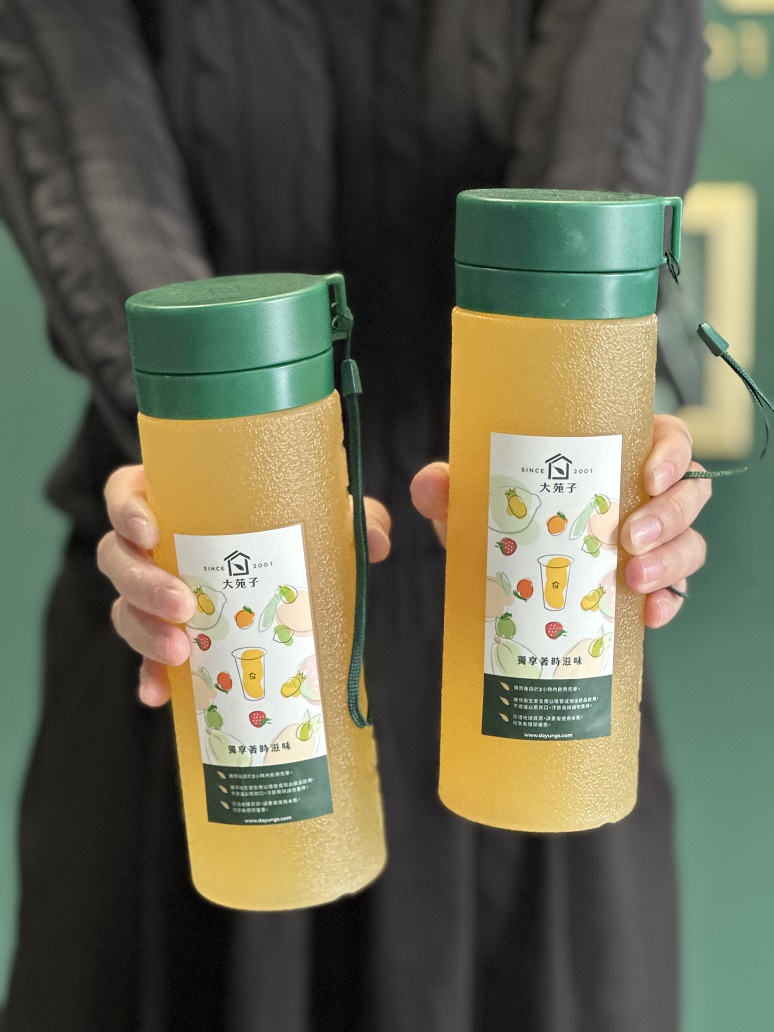 ▼2月15日新年的第一天,大苑子將連續兩天推出黃金點數兌換優惠。只要在大苑子APP上消費,即可累積黃金點數,點數可以兌換優惠飲品或周邊商品!此外,大苑子也提供環保選擇,指定飲品搭配獨享瓶,只需99元。整個2月都可以享受新春飲品「福桔滿滿」加上獨享瓶的超值優惠價格。喝飲料同時照顧地球環境!