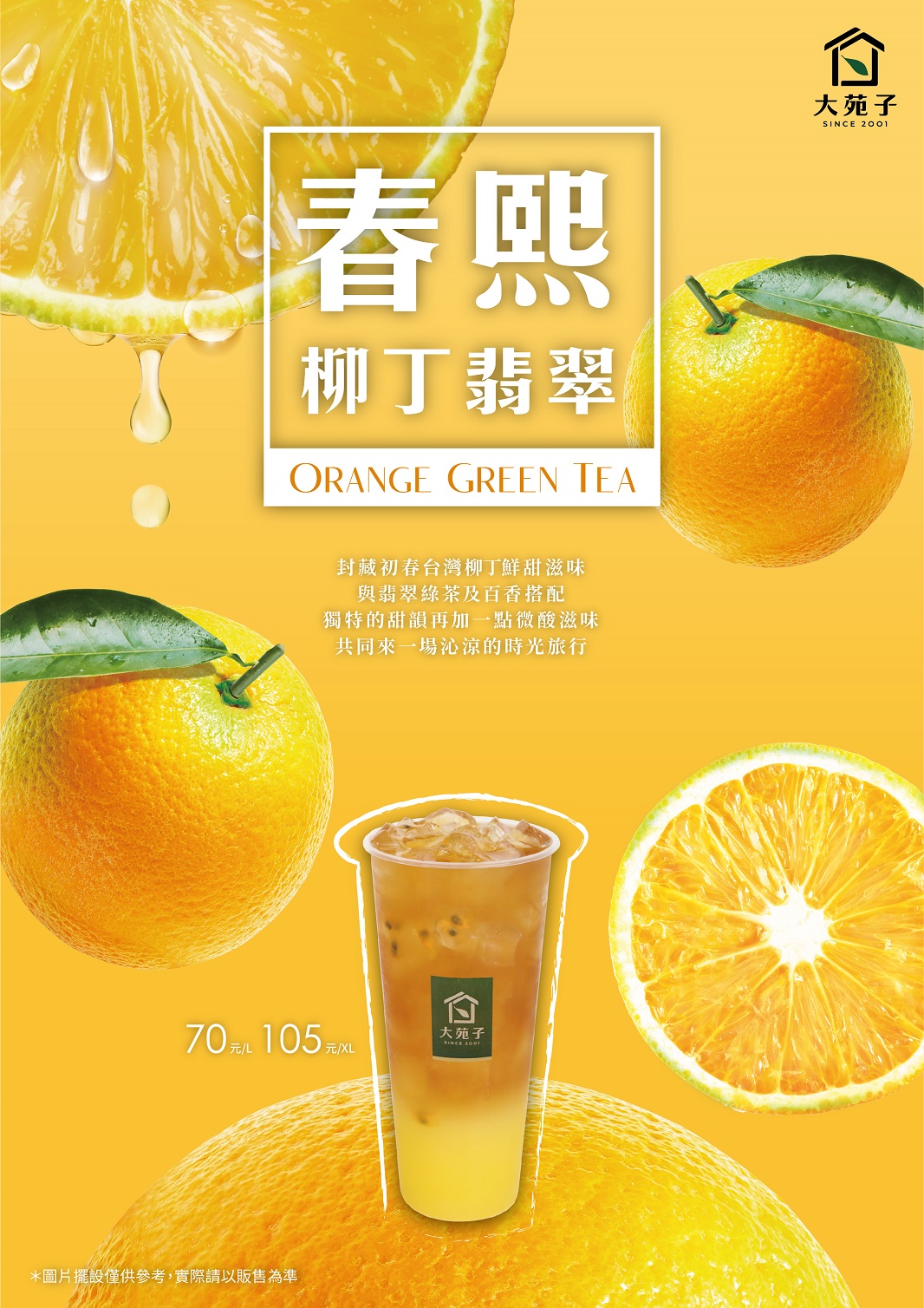 ▼2月份大苑子還會推出三款春熙系列飲品,延續台灣柳丁綠的美好滋味。「春熙柳丁咖啡」以不同風味帶給您的咖啡體驗,還有搭配柳丁香氣的「春熙柳丁翡翠」。另外別忘了還有「Red Bull能量小柳綠」,結合酸甜的柳丁原汁和綠茶,再加上Red Bull原味能量飲,清新酸甜,讓你精神更加飽滿。如果喜愛柑橘的特別滋味,千萬不要錯過大苑子的春熙系列飲品!