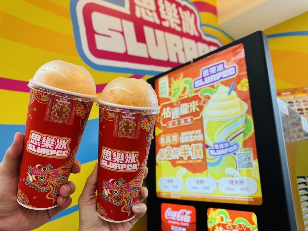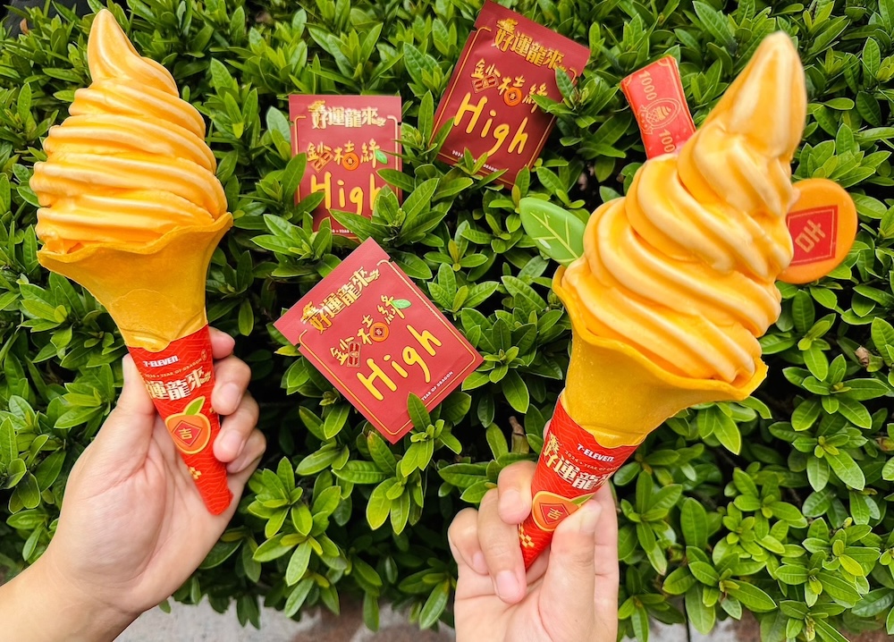 ▼7-ELEVEN的冰冰選擇超多!門店現場就提供思樂冰、霜淇淋和COLD STONE冰淇淋三種現做冰品。2/7開始,小七將推出象徵好運的「桔運龍來橘子風味思樂冰」,這款冰品散發著柑橘的清新香氣,並帶有甜酸的氣泡感,就像金龍年帶來了好運一樣,讓人感到開心和歡樂~
