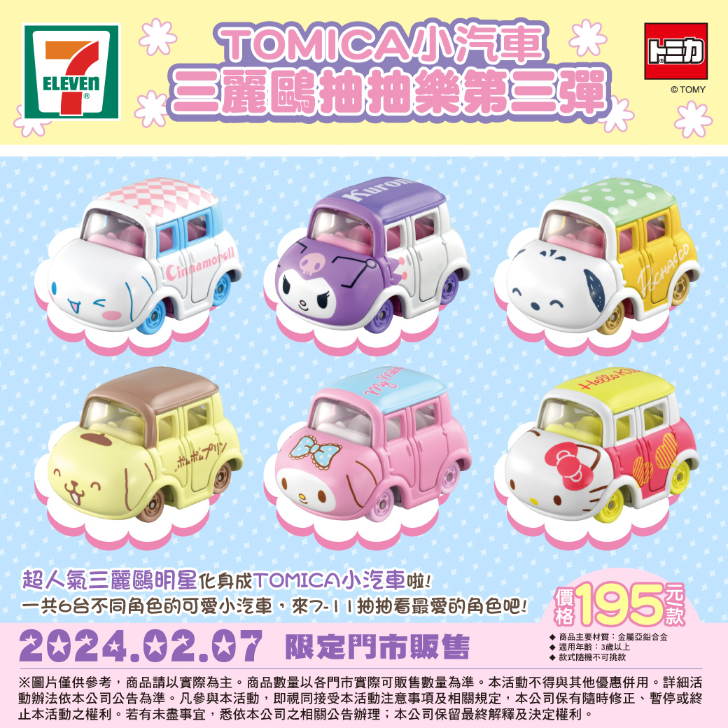 【全台】三麗鷗車隊出發! 7-11抽抽樂推「TOMICA三麗鷗小汽車」共6款 Kitty、大耳狗萌到沒法度