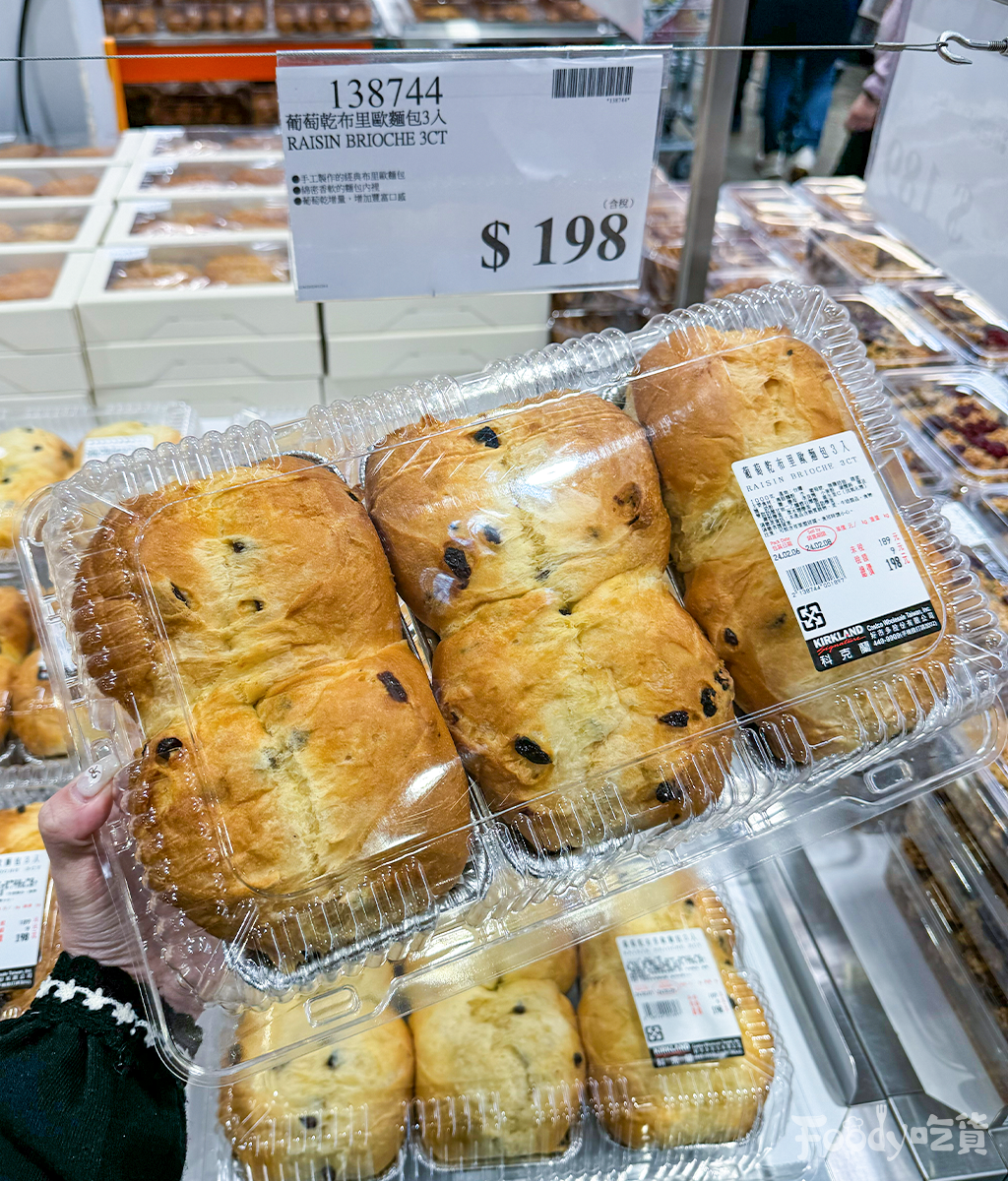 ▼好市多店員也認證的麵包區隱藏好物是它!「葡萄乾布里歐麵包」乍看真的超級低調,外觀簡簡單單,但是麵包口感酥脆,而且不會太甜,放烤箱烤一下加倍美味!購入的網友表示連平時不愛吃麵包的老公都讚不絕口,小孩更是一口接一口,讓她覺得買得太值了!一盒3入真的超划算,因為麵包超大一顆的啊~