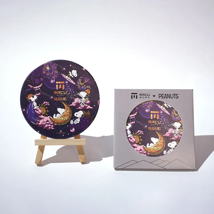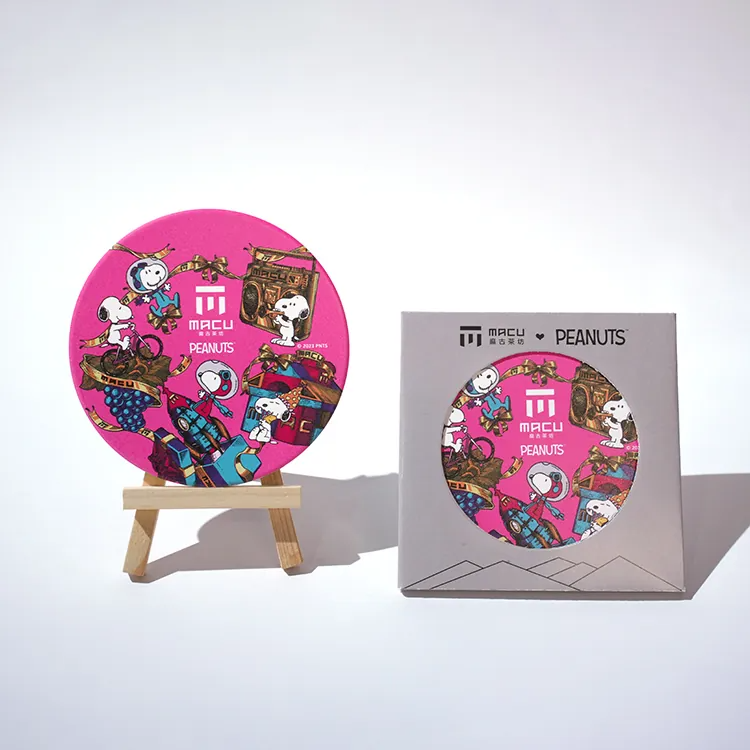 ▼手搖控不用擔心,史努比也化身杯套、杯墊來陪伴你!可愛時尚的杯套不但是實用生活小物,更讓飲品喝起來更齁令!杯墊共有三款可以選擇,包括紫幻星空與粉夢盛禮,設計超精美。麻古茶坊同時也預告會有造型飲料杯開賣,立體史努比就在飲料杯上會不會太可愛!