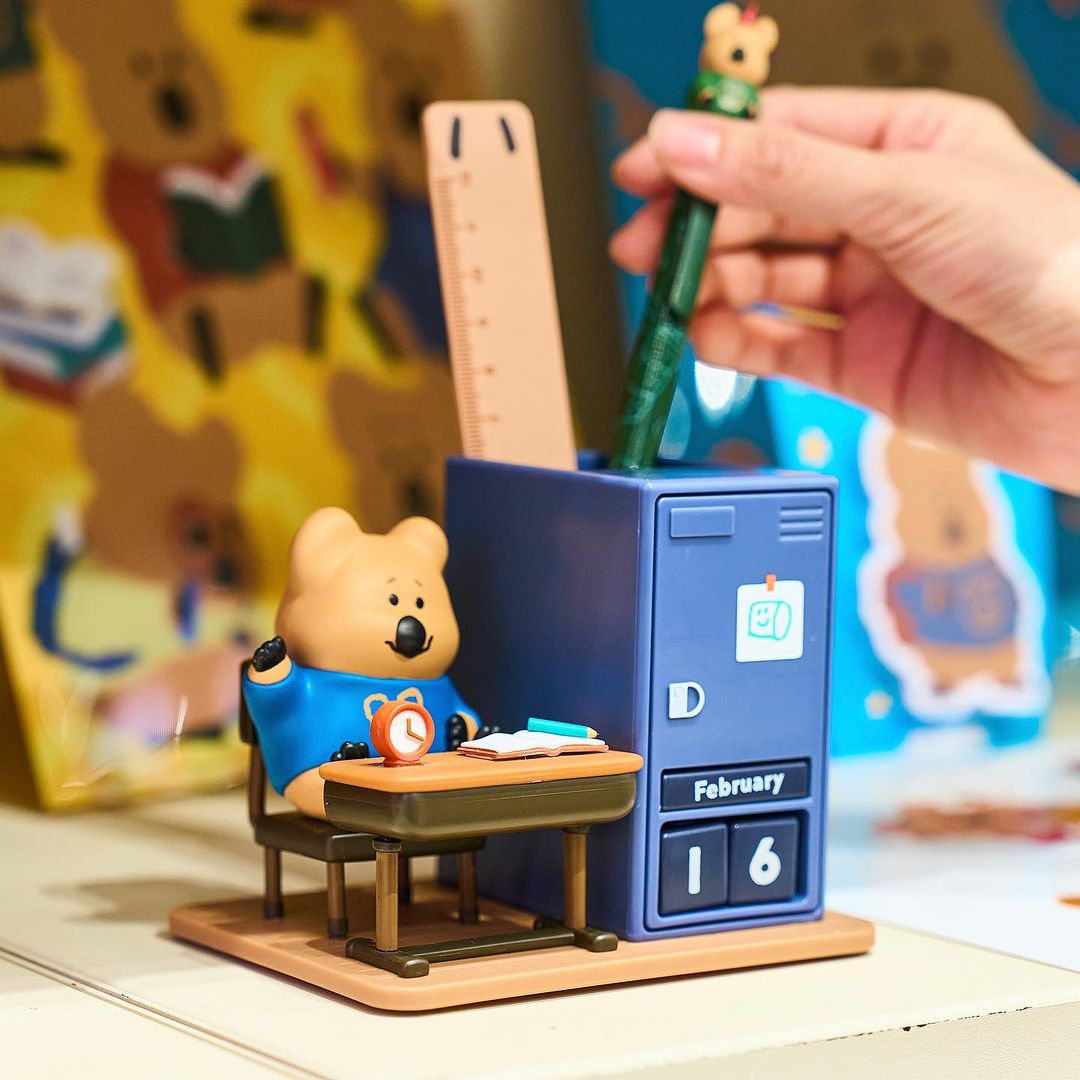 ▼尤其是這款「Dinotaeng Fatty Perpetual Calendar 造型萬年桌曆筆筒」,巧妙地融入了校園生活的元素,可愛的袋鼠Quokka坐在教室裡,模樣非常認真,舉手的姿態仿佛正想要積極回答老師的提問。桌面上擺放的筆記本、筆和小鬧鐘等細節設計,增加了整個萬年桌曆的生活氛圍,旁邊的筆筒設計成儲物櫃的造型,上面貼有棉花糖Marsh的照片。更加特別的是,這款筆筒還能夠作為萬年曆使用,無論是放在辦公桌上、書桌上或是家中的任何角落,都能為空間增添一抹明亮的色彩和無窮的樂趣!