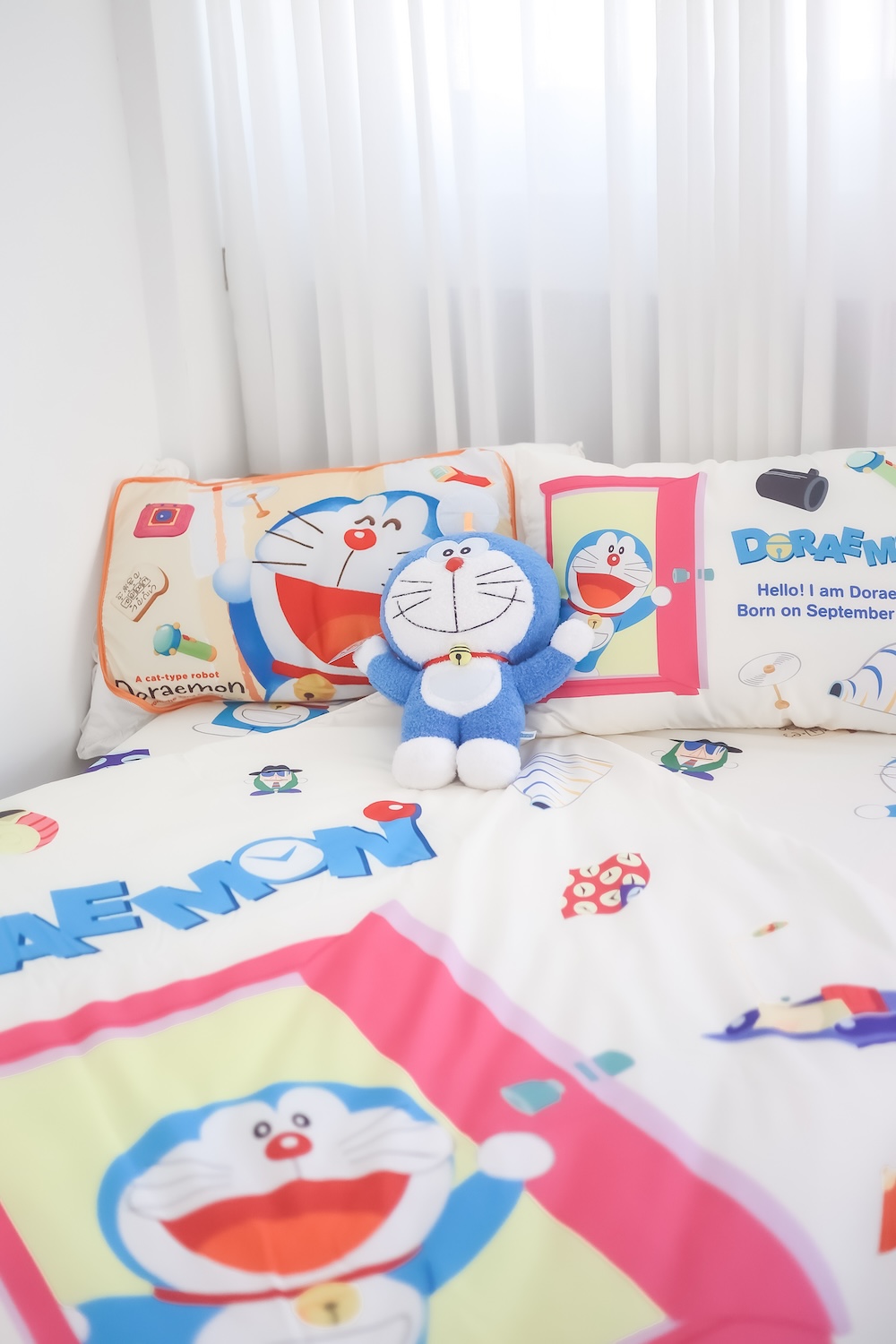 ▼除了外出用品,7-ELEVEN同時推出了一系列居家周邊用品唷!包括可愛的「限量造型擦手巾組」、「限量披肩蓋毯」和「限量含蓋泡麵碗」等,每一件都蘊含了哆啦A夢的溫馨和魔法。還有滿滿祕密道具設計的「限量四季被」、「限量隨手吸管杯」和「限量靜電掛勾三件組」,能躺在有任意門的床上也太幸福!這些周邊無一不展現出對哆啦A夢的愛~