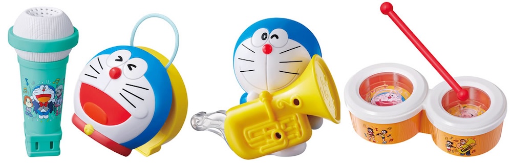 ▼第一彈包括唱歌麥克風,是以電影中出現的角色美嘉為主題設計的麥克風形狀玩具,真的能唱歌,還會變聲喔!此外還有哆啦A夢的響板能夠敲擊,以及哆啦A夢低音號,吹氣會發出聲音,用手指按壓洞孔時,聲音會發生輕微的變化。可愛的小鼓則是迷宮型玩具,非常適合拿在手上把玩!