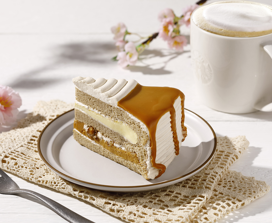 ▼甜點櫃的新品也來了!慶祝星巴克26週年,以經典暢銷咖啡焦糖瑪奇朵為發想,推出咖啡風味的「焦糖瑪奇朵蛋糕」。咖啡戚風蛋糕中夾入滑嫩香草布蕾奶餡,以及香甜焦糖慕斯,表面再鋪上一層焦糖醬與咖啡奶油裝飾,入口能感受到奶油和焦糖結合的口感,配上咖啡微苦風味剛剛好!