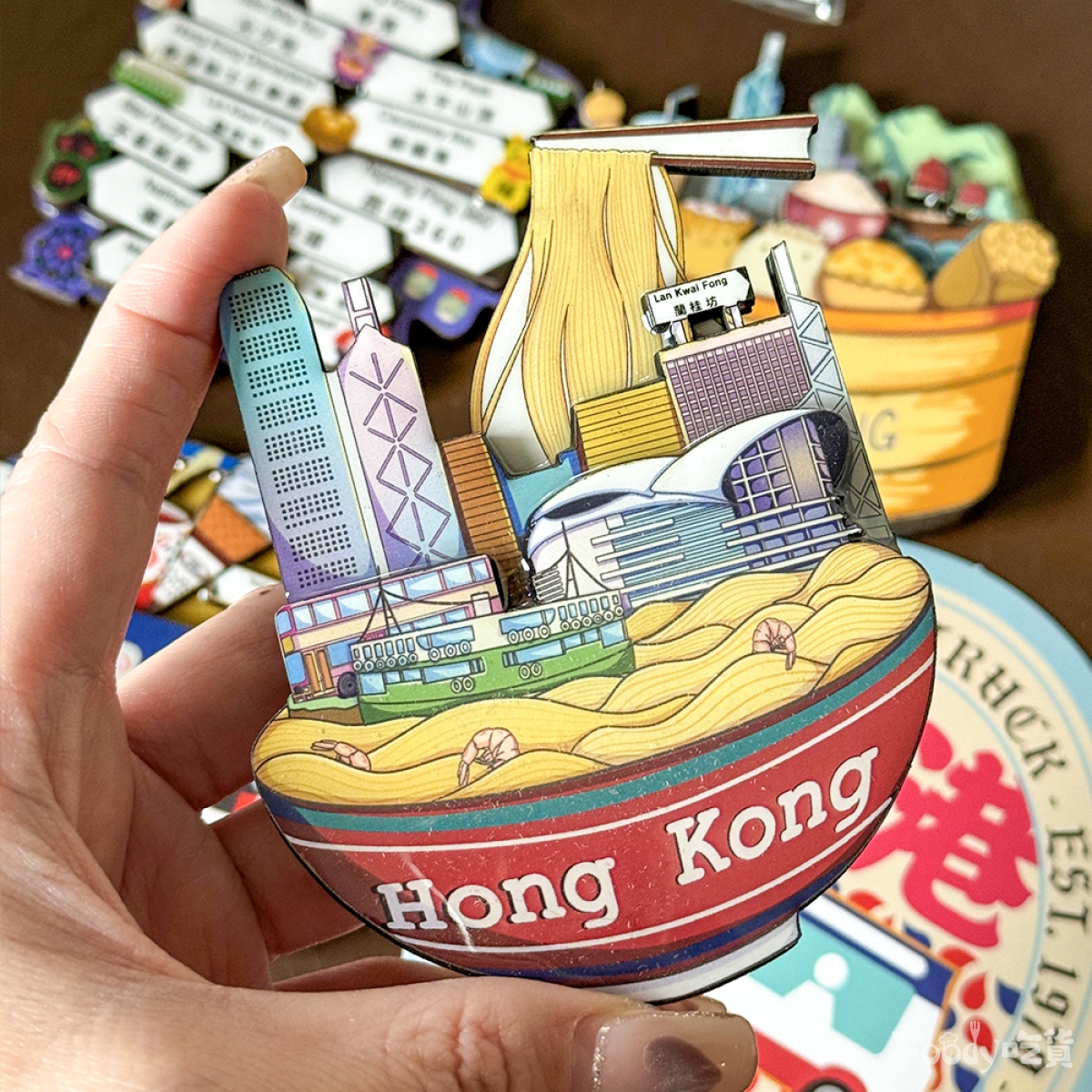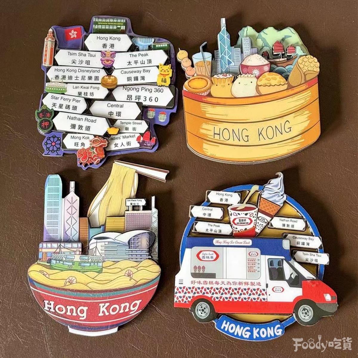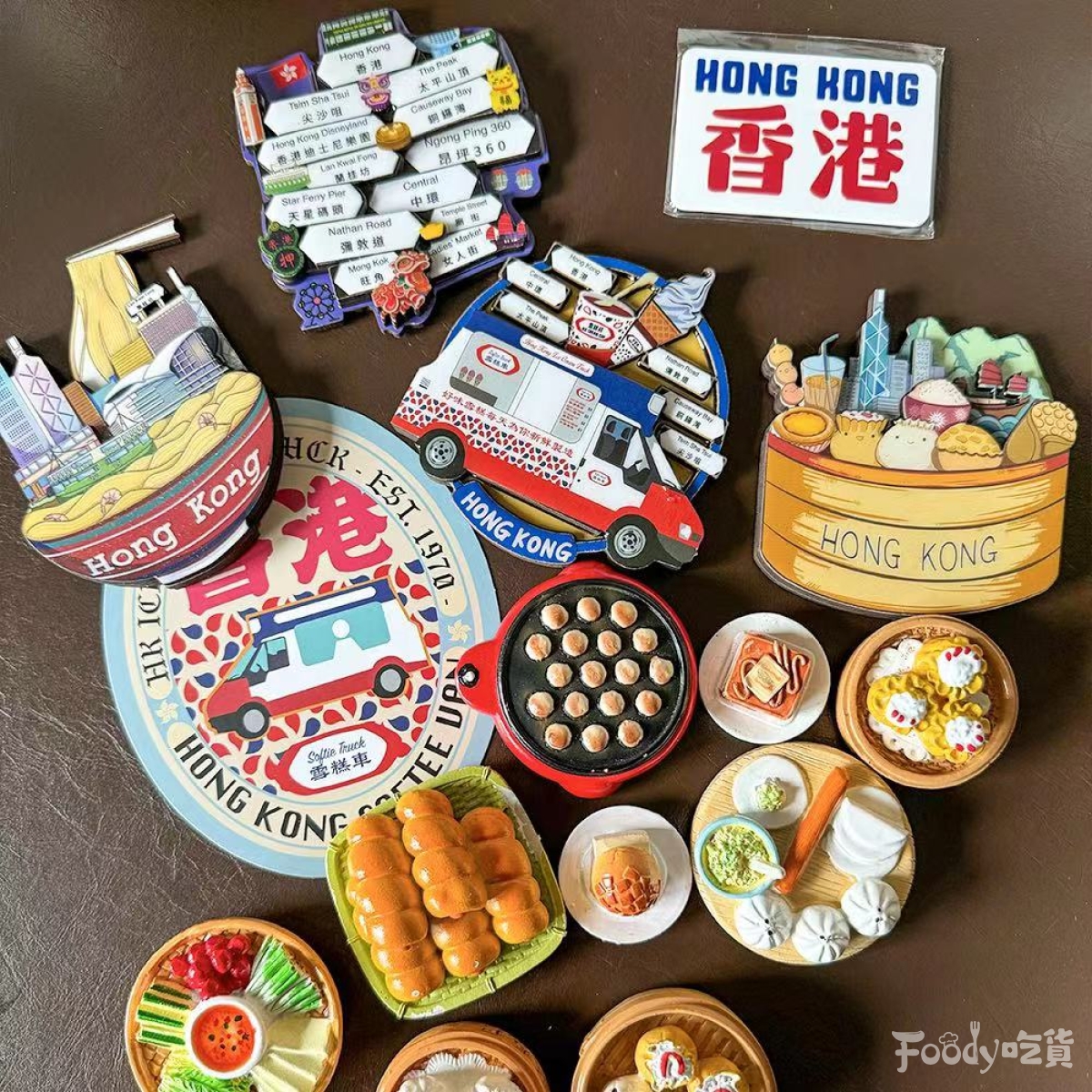 ▼這些磁鐵不僅限於美食系列哦!精緻磁鐵還原了香港當地的豪華雪糕車、港點奶茶、路標、撈麵……每一款都是精心設計,充滿創意,看著它們,就像是在進行一場小小的香港之旅。豪華雪糕車讓你回憶起那炎炎夏日,港點奶茶再現下午茶的悠閒時光,而那些路標、撈麵則是香港街頭的日常風景,略帶復古的造型超級有fu呀~