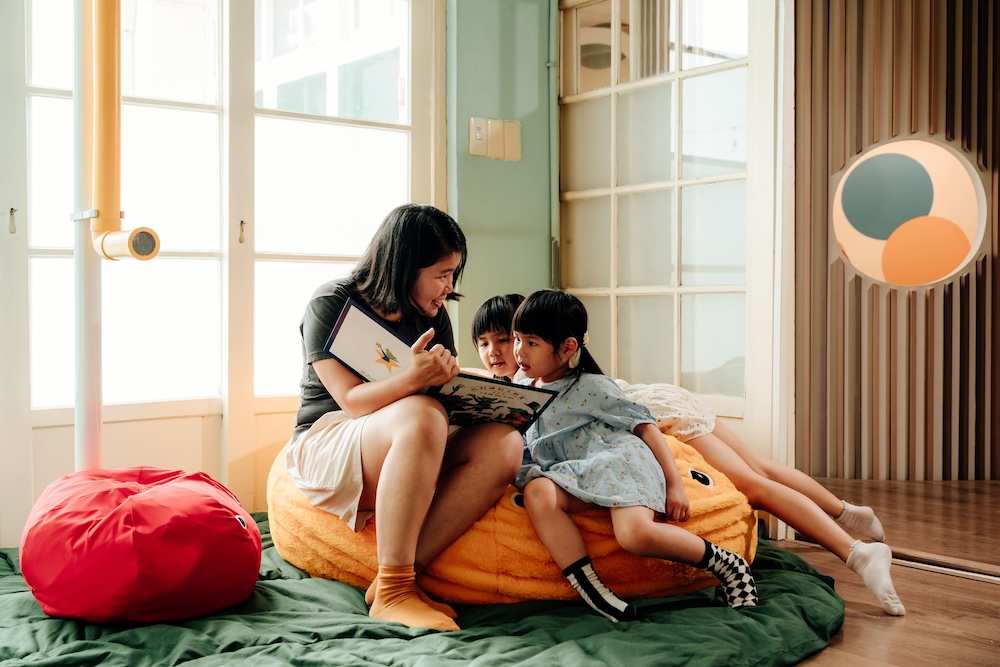 ▼進入「麥麥共讀區」不僅有充滿大自然聲響的共讀區,更有著如同森林中藤蔓一般的故事傳聲筒,讓親子講故事也充滿樂趣。共讀區的中央有間樹屋,走進樹屋中會見到可愛的麥麥故事盒,只要將你的耳朵靠近聆聽,就可以聽見《苔蘚兄妹》的故事內容,即日起至5月免費展出!此外,麥麥樂天團也將在全台餐廳巡迴演出年度選書《苔蘚兄妹》故事秀,期待透過故事的分享,啟發孩子們的想像力。