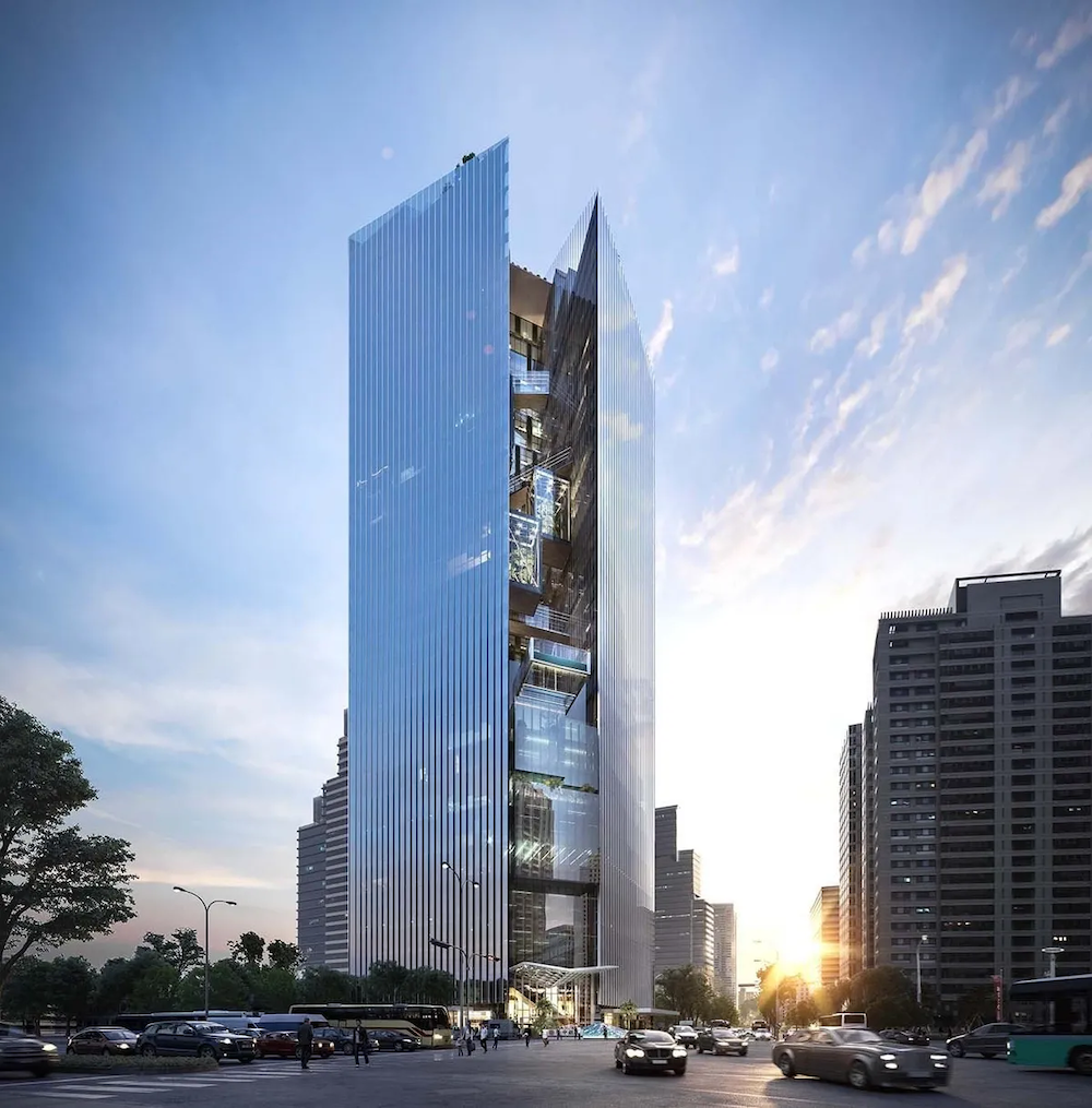 ▼「台中之鑽」在設計上可是下足了功夫,經過無數次的提案調整和疊代精修,最終版竟然巧妙地將台中商銀的企業標誌「中」融入建築設計中。而且為了避免把所有有趣的東西都塞在一棟大樓裡,設計師們竟然搞了兩座塔樓,中間還放了一些看起來像是漂浮著的透明玻璃盒子,真是創意十足!