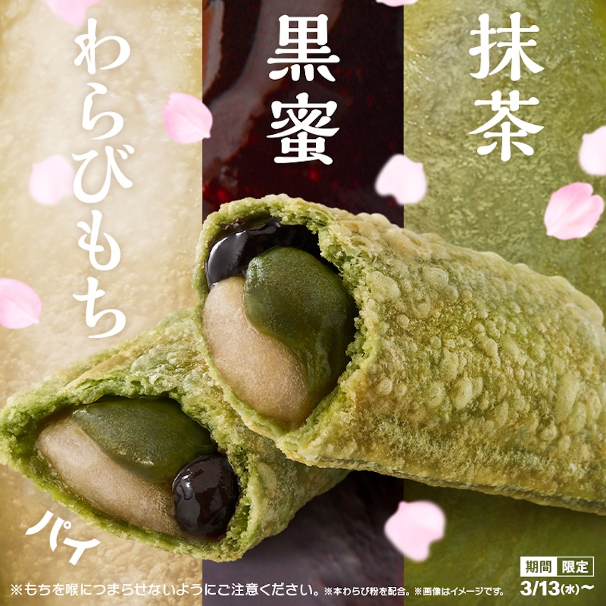 ▼另外,還有日本麥當勞首次販售的「抹茶黑蜜蕨餅派」,三層派皮一口咬下去滿滿酥脆口感,裡頭包含濃郁的抹茶紅豆餡以及Q軟蕨餅,搭上香甜黑蜜醬層次超完美!這款新品預計販售到四月中,隨時可能結束,最近有前往日本的人記得品嚐唷!