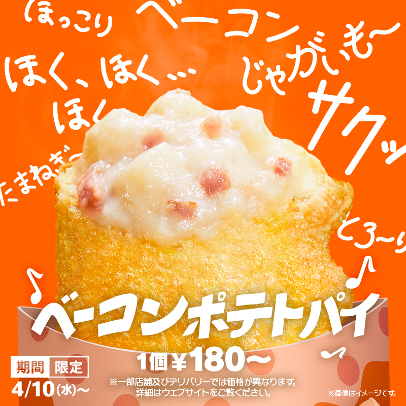 售價:爆漿培根馬鈴薯派 180円起(約38元台幣)
