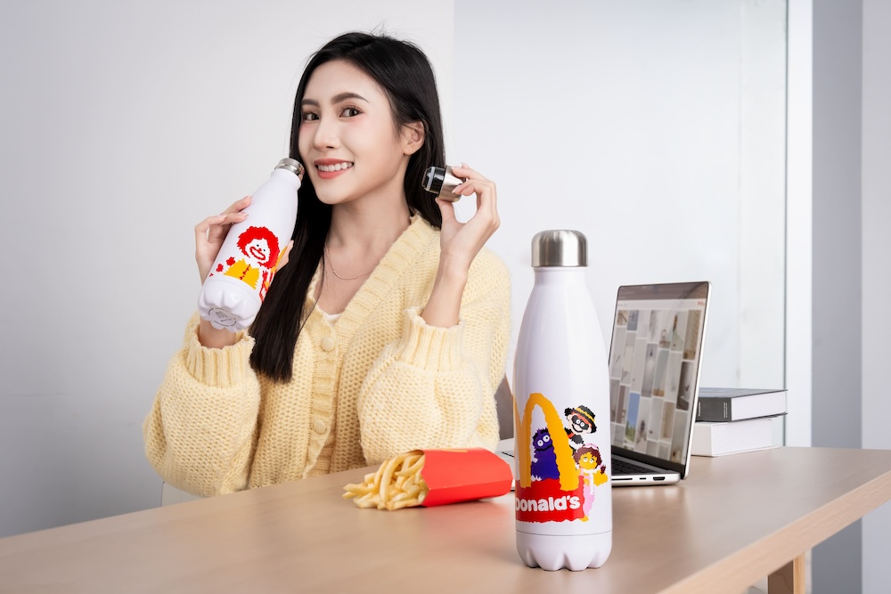 ▼歡慶麥當勞來台40週年,在世界地球日前夕,麥當勞也呼朋引伴愛地球,推出「麥當勞叔叔與好朋友們 抖陣一起」隨手瓶與購物袋兩款環保商品,環保時同樣很古錐!隨手瓶選用不鏽鋼材質,不僅保冷保熱效果更持久,也更具耐用性且易於清洗。