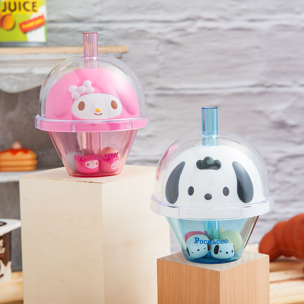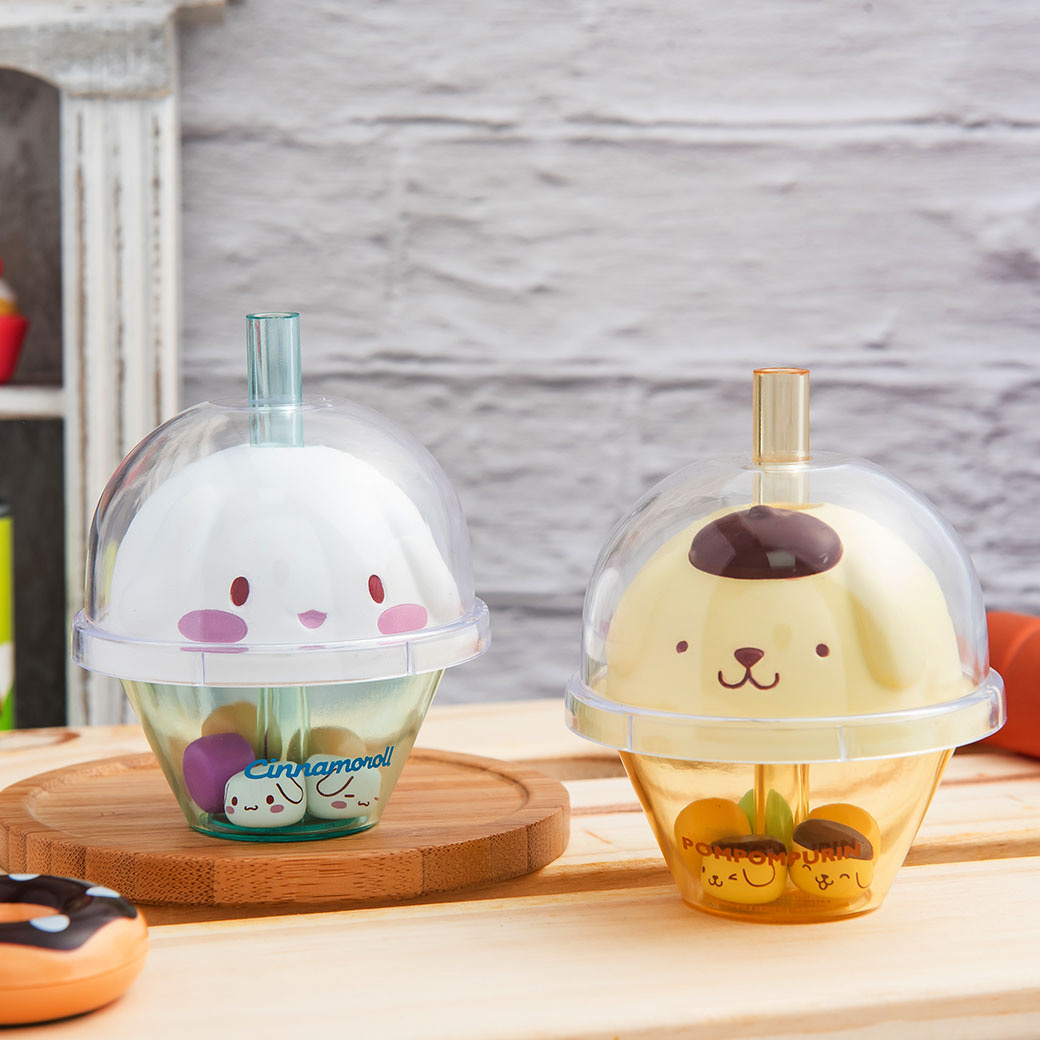 ▼首先來看「三麗鷗珍珠奶茶杯」盲盒系列,Hello Kitty、美樂蒂、酷洛米、布丁狗、大耳狗、帕恰狗,這些我們耳熟能詳的角色都化身成為珍珠奶茶杯的模樣,可愛爆表!透明杯身,底部的珍奶部分巧妙變成了角色的大頭,這樣的設計簡直讓人忍不住想要將它們「喝掉」!