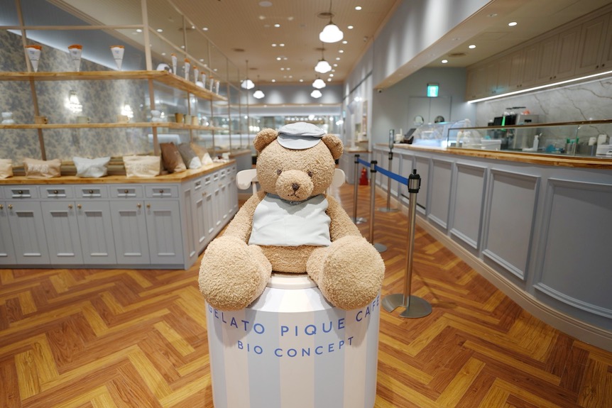 ▼最讓人驚喜的是,Gelato Pique Café的熊店長也隨店一同來到了台灣囉!這位超級可愛的熊店長不僅會在店內迎接你,還有以熊店長為主題的茶包、迷你馬卡龍、限定保溫杯和手提袋等等,各種可愛的商品讓你選購的同時,也能感受到滿滿的愛意和溫馨。