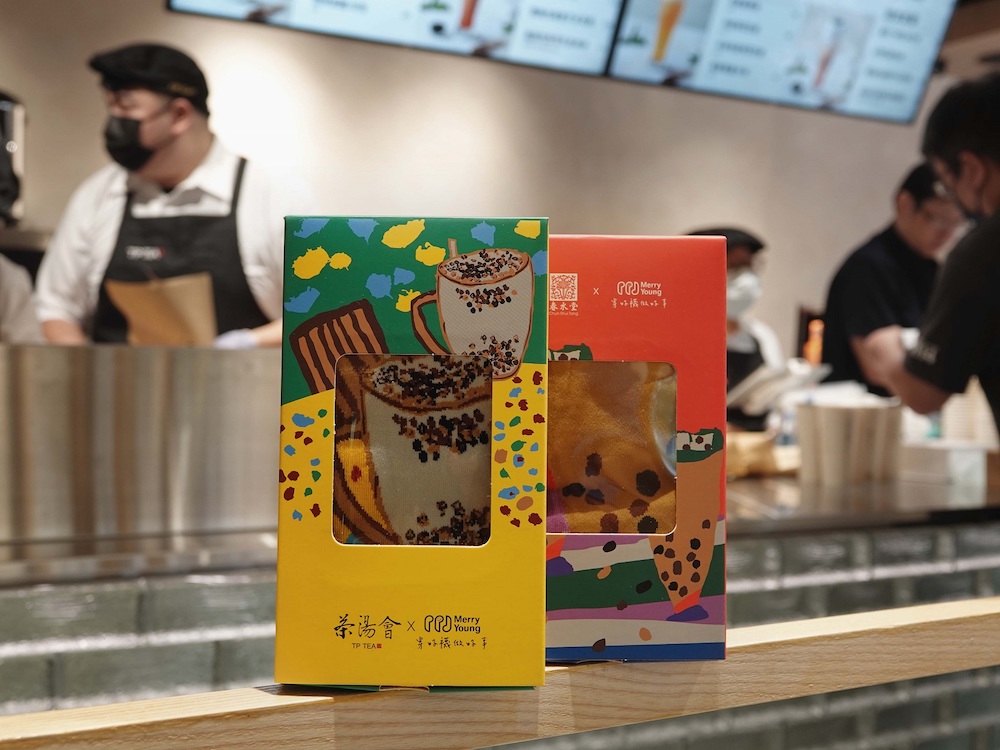 ▼最後,茶湯會還與瑪利亞基金會快樂襪合作,展開公益計畫,以瑪利亞青年創作的珍珠奶茶繪畫作品,推出「聯名快樂襪」。
