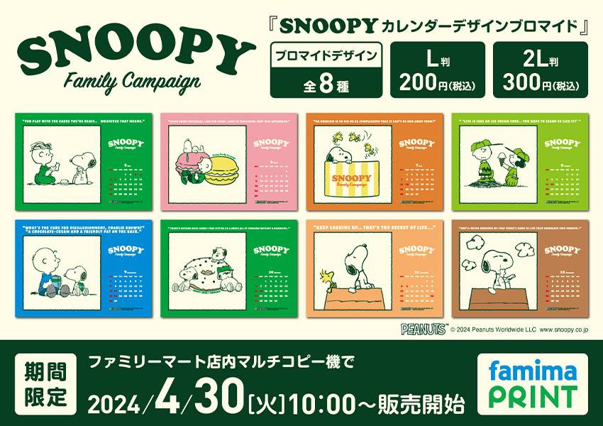 ▼最後,別忘了利用日本全家推出的限定FamilyMart Print服務,在店內複印機上印刷PEANUTS日曆明信片,一張只要200円,共有8種款式可供選擇,絕對是一個輕鬆又有趣的收藏品!