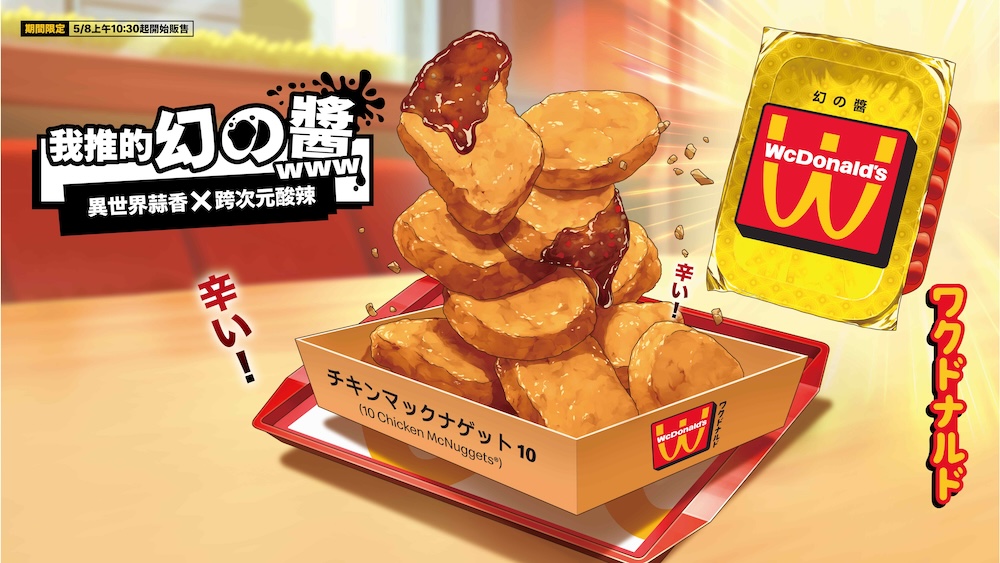 ▼此外這波也推出全新的麥克鷄塊沾醬「幻の醬」!這款蒜香酸辣醬由生薑、大蒜、醬油、辣椒等食材調製而成,吃起來鮮辣爽口,搭配經典麥克鷄塊,每一口都猶如動漫角色能量爆發的熱血滋味,想吃吃看不同於糖醋醬的味道嗎?搭配限定的鷄塊和沾醬包裝一起品嚐吧~