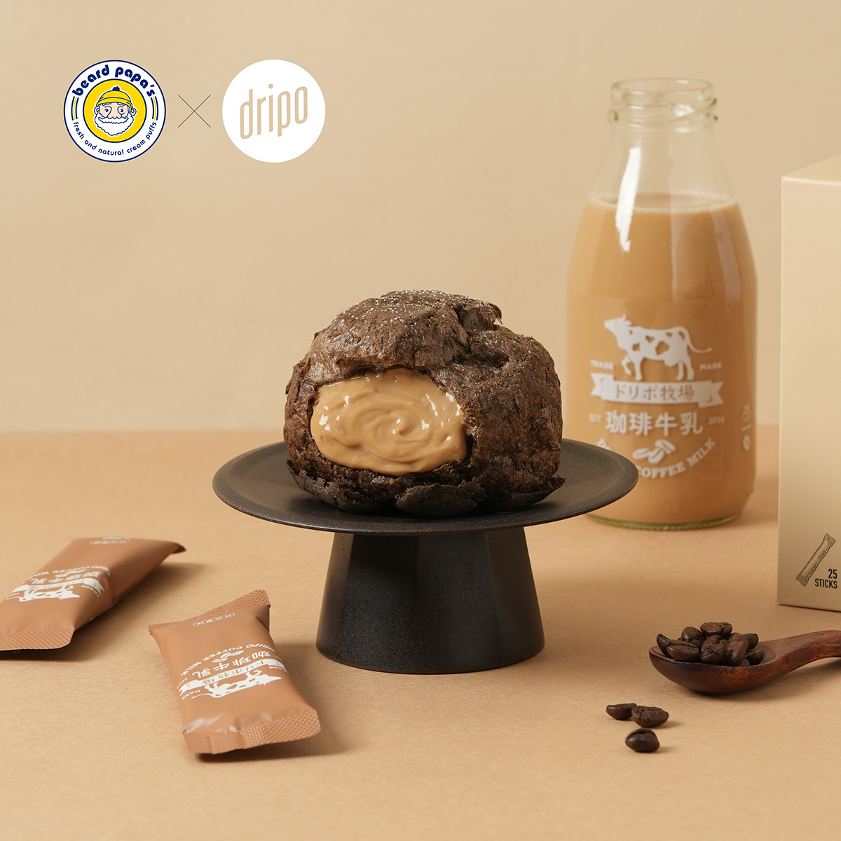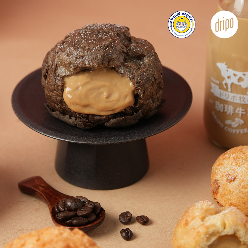 ▼接下來是「珈琲牛乳泡芙」,這款泡芙內餡融合了Dripo的珈琲牛乳與beard papa’s卡士達,濃醇的乳香和厚實的咖啡味道交織出日本經典珈琲牛乳的風味。品嚐一口,彷彿瞬間置身日本,吃完後的齒頰香氣和回甘韻味更是令人意猶未盡,保證你一口接一口,停不下來。