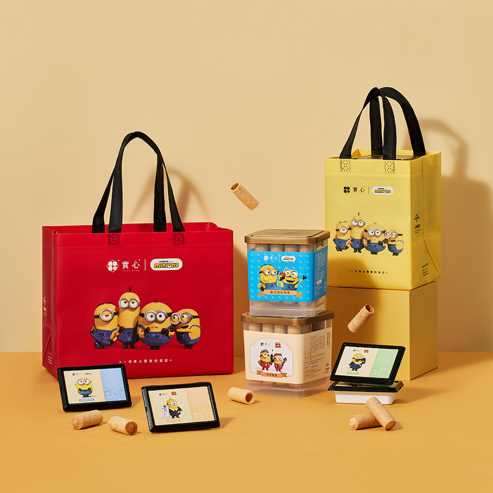 ▼另外,實心蛋捲還特別打造了小小兵專屬的小天地,從店面佈置、蛋捲口味、禮盒包裝到周邊贈品,每一項設計都充滿小小兵元素。小小兵聯名款禮盒是送禮的好選擇,還有提袋、馬克杯等周邊,可愛療癒又實用。