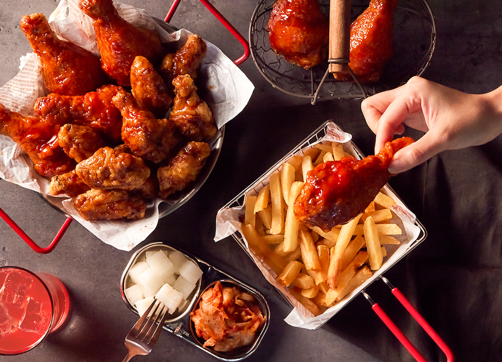 ▼「本村炸雞 Bonchon」以其獨特的雙重炸製工藝聞名。這種工藝使得雞肉外皮超級酥脆,而內裡卻保持多汁嫩滑。與傳統韓式炸雞的淋醬方式不同,Bonchon採用「手工刷醬」的技術,均勻地將獨家醬汁刷在炸雞上,保證每一口都能享受到酥脆的口感和濃郁的風味。