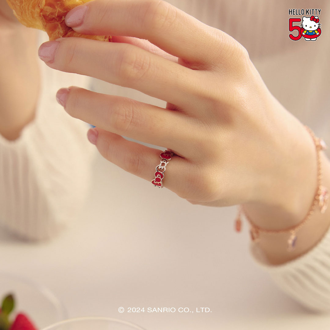 ▼此外飾品控們注意啦!三麗鷗與Bonny&Read、Lucy’s、Story+、甜蜜約定2sweet等四家知名飾品品牌合作,推出了超多款Hello Kitty夢幻飾品。Bonny&Read 的系列飾品中,Hello Kitty和她的好友們成為主角,推出了戒指、手鍊和耳環等多款甜美飾品,還有結合Hello Kitty 50週年限定蝴蝶結設計的尾戒,非常獨特。