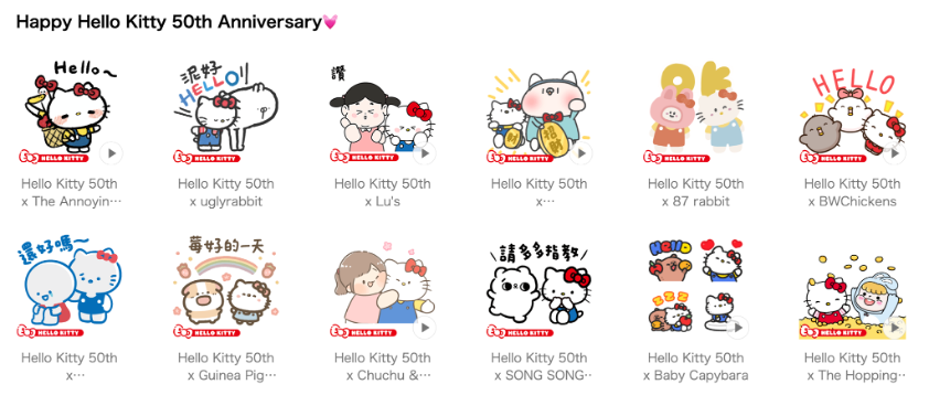 ▼虛擬世界怎能少了 Hello Kitty?三麗鷗與多位知名創作者合作,推出了全新LINE貼圖企劃,讓不同樣貌的Hello Kitty萌化你的對話!目前已經推出了多達24款不同貼圖,每月還會有新款推出,每月都有新的驚喜等著你!