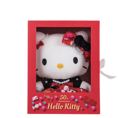 ▼三麗鷗這次推出的限量紀念絨毛娃娃真是粉絲必收!娃娃的設計以50週年紀念主視覺為印花,Hello Kitty身上的蝴蝶結和裙子都超可愛,還有黑色上衣和珍珠點綴。最特別的是,每個絨毛娃娃的腳上都有限量編號,真的超級有紀念價值!目前已經開始發售,想要收藏的粉絲們趕快去三麗鷗專櫃看看吧!