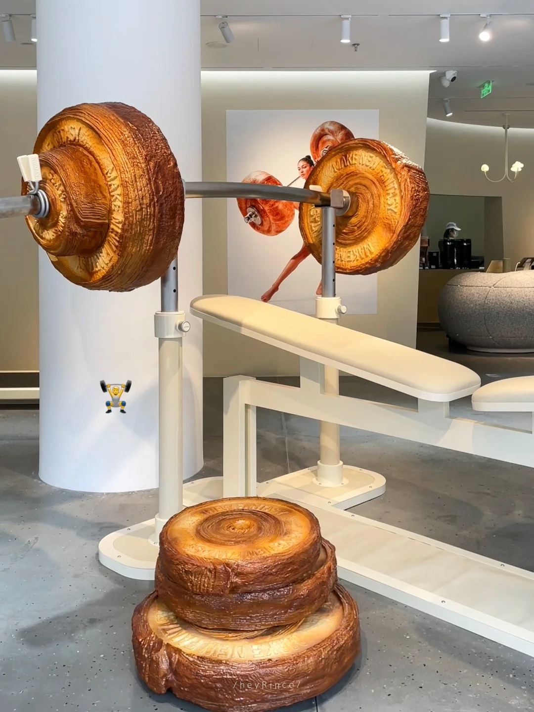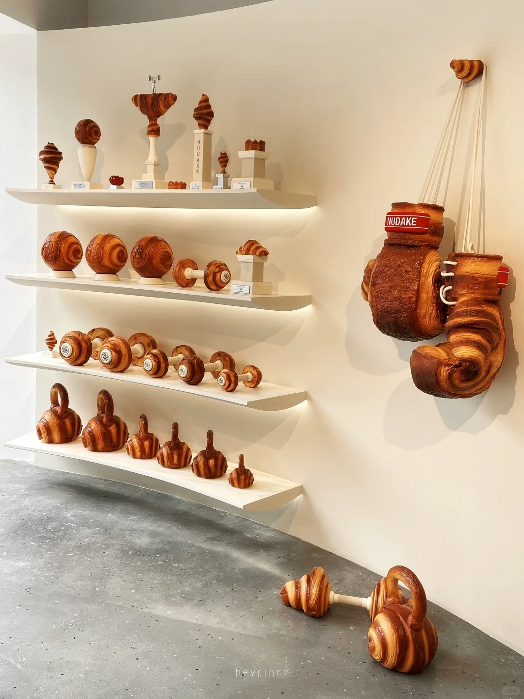 【海外】可頌健身房? NUDAKE新店空間太可愛 可頌化身巨大啞鈴、拳套超好拍