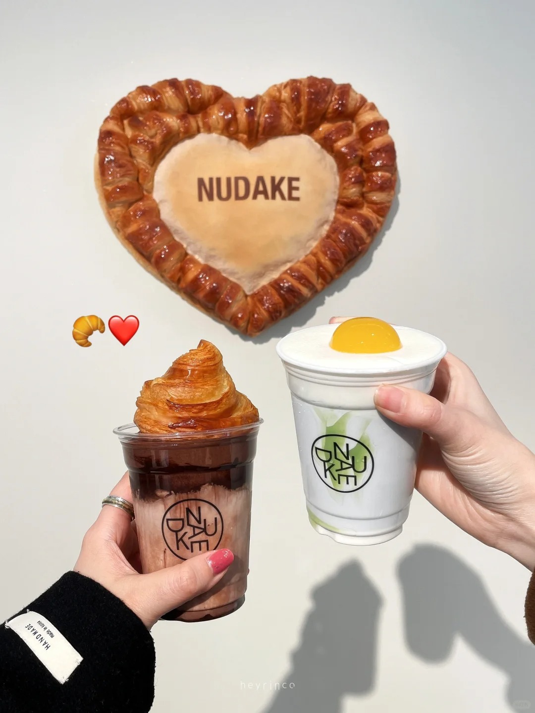 ▼藝術甜品品牌NUDAKE,一向主張通過天馬行空的藝術甜點喚醒顧客的味蕾。他們佈置的空間自然不會無聊。門口的超巨大可頌,瞬間吸引人們的目光,只看似乎就能聞到屬於可頌的溫暖香氣。