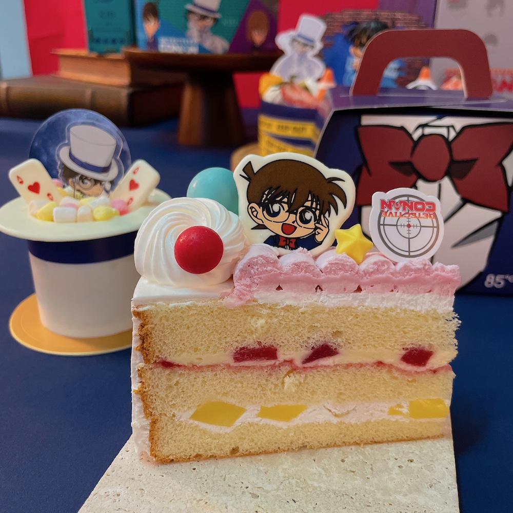 ▼小蛋糕「名偵探柯南-小小名偵探」也不能錯過,小小名偵探柯南在蛋糕鮮奶油裡找尋真相,香草戚風蛋糕加上草莓慕斯,搭配卡士達餡和酸甜草莓果醬,還有莓果Q凍和布丁,每一口都充滿驚喜。