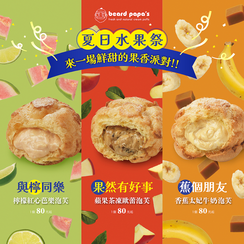 這個夏天,快來beard papa’s品嘗這些限定的美味泡芙,讓你每一口都充滿驚喜與幸福吧!