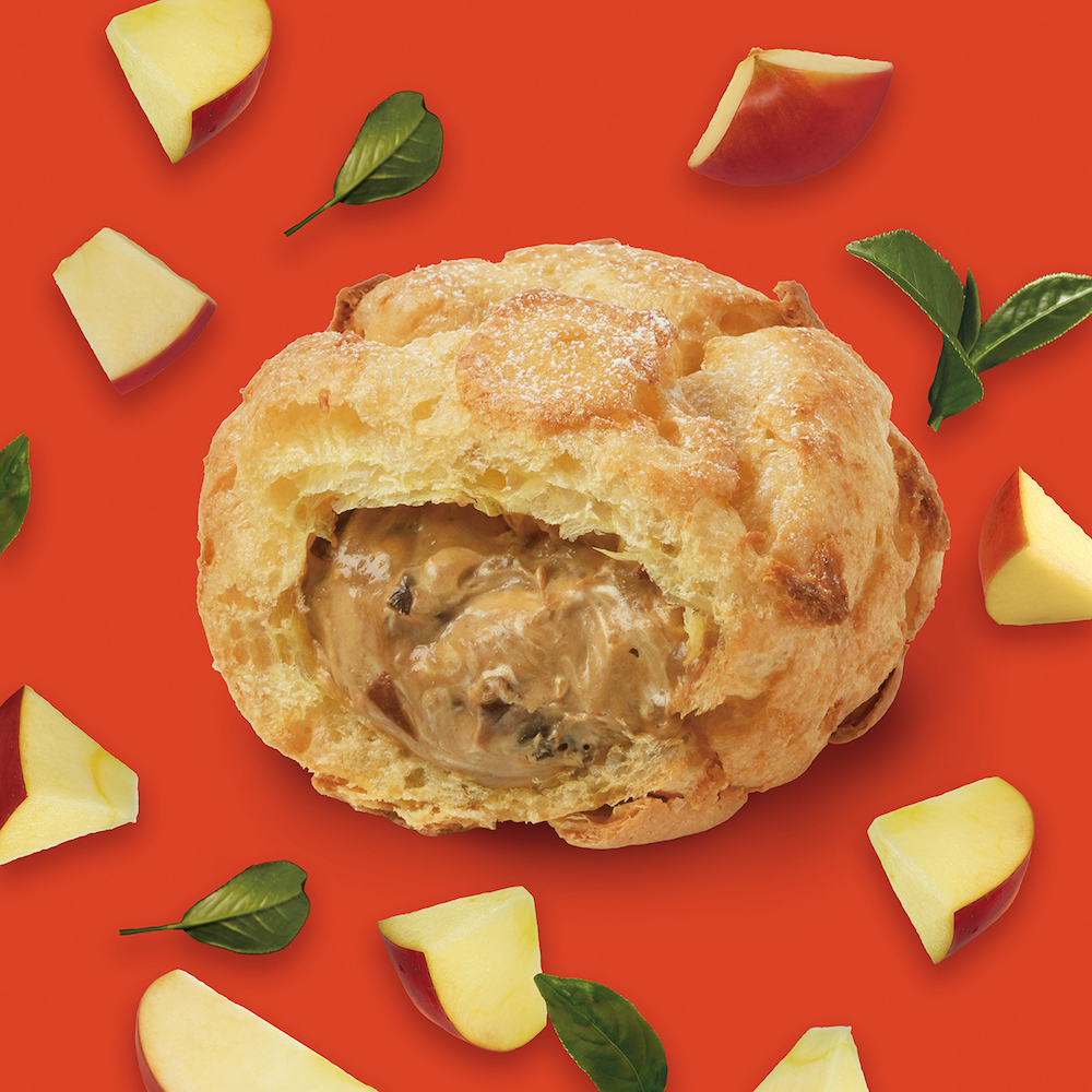 ▼第二種是「蘋果茶凍歐蕾」,這款泡芙結合了蘋果泥、牛奶和beard papa’s經典卡士達,創造出香氣淡雅、甜蜜誘人的「蘋果茶凍歐蕾」內餡,再加入醇厚的紅茶凍,讓口感更上一層樓。每口咬下都能完美地感受到果香與茶香的結合,讓人越吃越涮嘴。