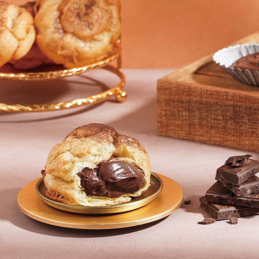 ▼除了限定的水果口味泡芙,beard papa’s還推出了全門市皆販售的「經典巧克力泡芙」。嚴選70%黑巧克力拌入beard papa’s經典卡士達,每一口都能品嘗到巧克力獨特的苦甜滋味,香氣濃醇撲鼻,派皮上撒上可可粉,加倍濃郁的滋味讓人越吃越幸福。