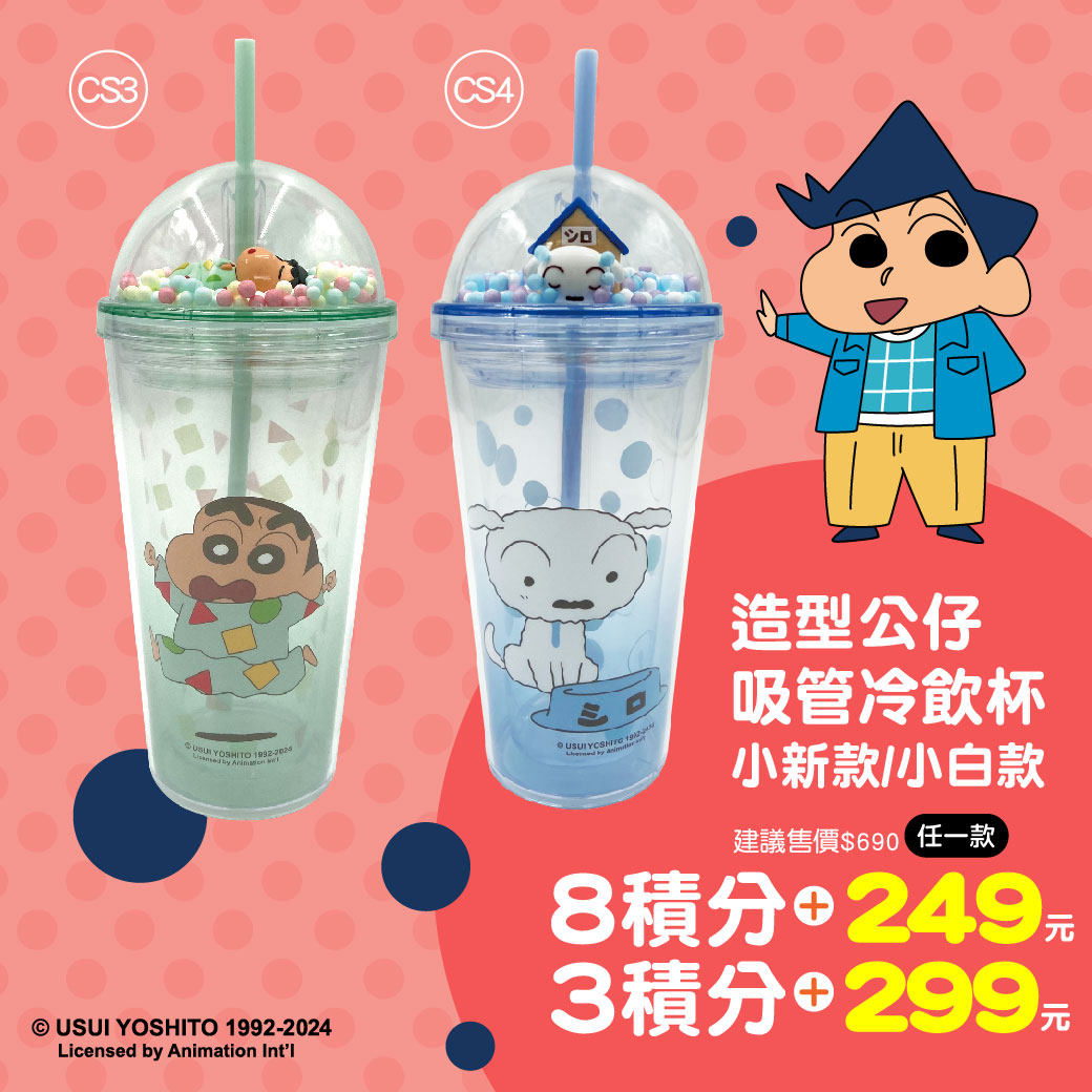 3.造型公仔吸管冷飲杯-CS3小新款/CS4小白款:任一款8積分+$249/任一款3積分+$299