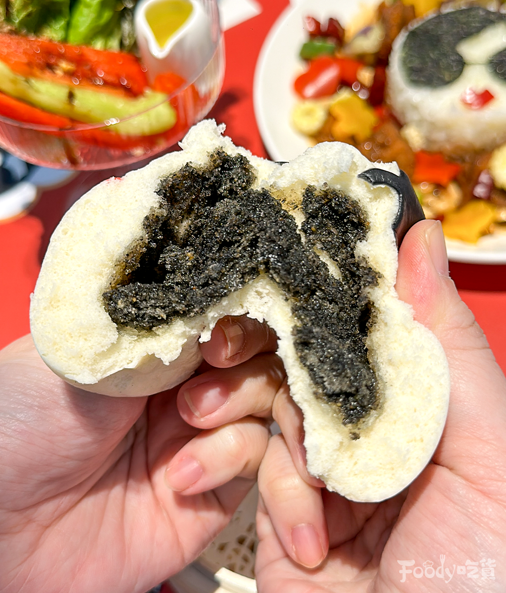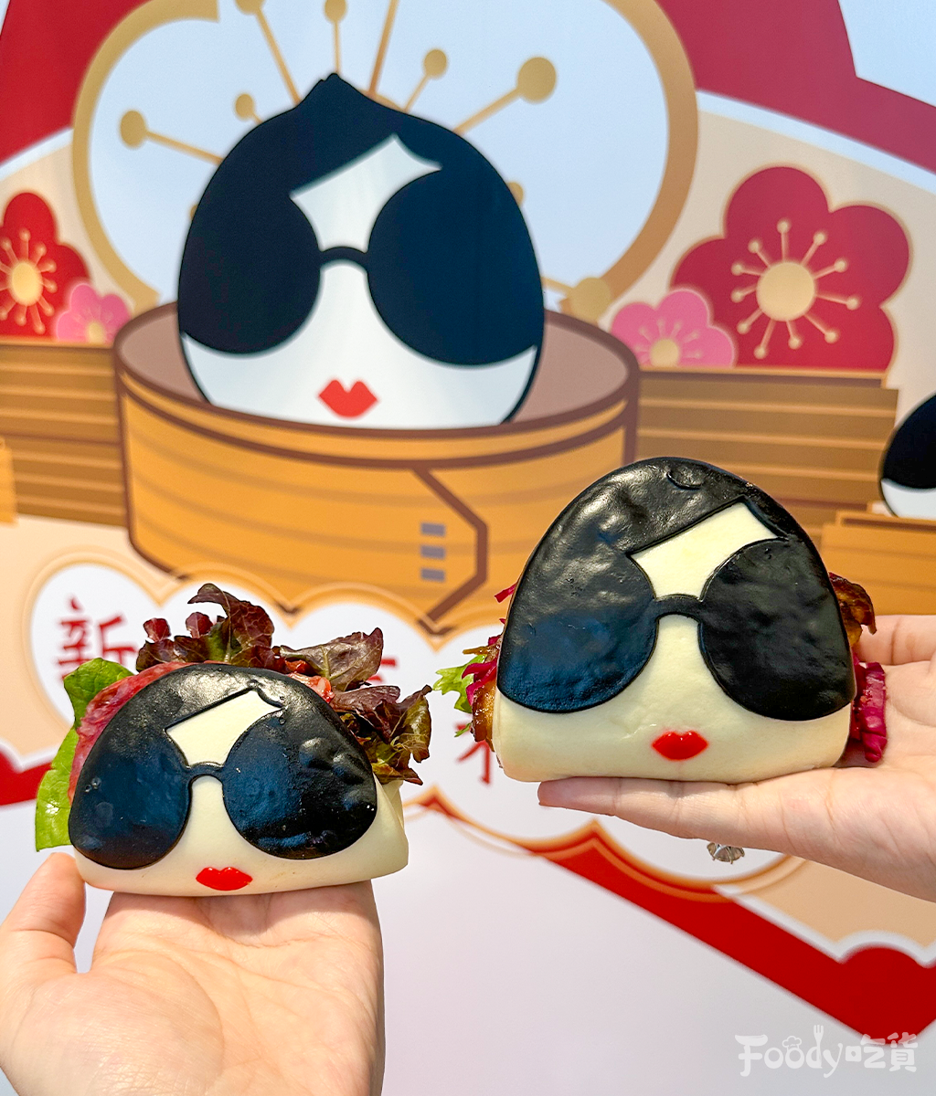 ▼首先,來介紹一下這次菜單的亮點之一-特色刈包。每一個刈包都經過師傅們的精雕細琢,手工捏製出可愛的娃娃造型,實在是萌到讓人不忍心吃掉。經典口味有「梅干扣肉」和「蜜汁烤肉」,還可以選擇是否添加香菜和花生粉,滿滿的貼心啊!「梅干扣肉」刈包特別加入了由紫高麗菜醃製的德式酸菜,口感清脆,酸甜解膩,既美味又健康。而「蜜汁烤肉」則是全瘦肉,吸滿濃郁的鹹甜烤肉醬汁,每一口都充滿驚喜。