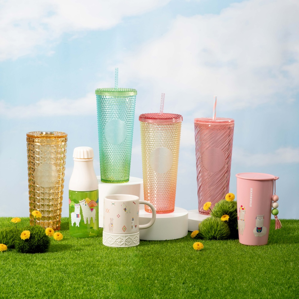 ▼今夏杯款以羊駝的「波西米亞嘉年華」為設計主題,羊駝們穿上當地美麗的傳統服飾,漫步在美麗山脈中,細膩的插圖設計同時有著可愛感,此外還有科技美學新品的「星心晶采馬克杯」,獨特設計展現高雅質感。