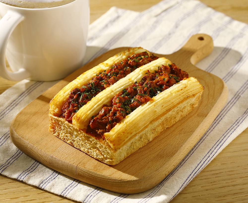 ▼鹹食部分這季則走義式風格,包括「義式肉醬佛卡夏」酥脆堡體,鋪滿奶油薯泥與義式肉醬;「瑪格麗特薄餅」重現義式鬆軟薄餅,上有番茄片、青醬及雙重起司!