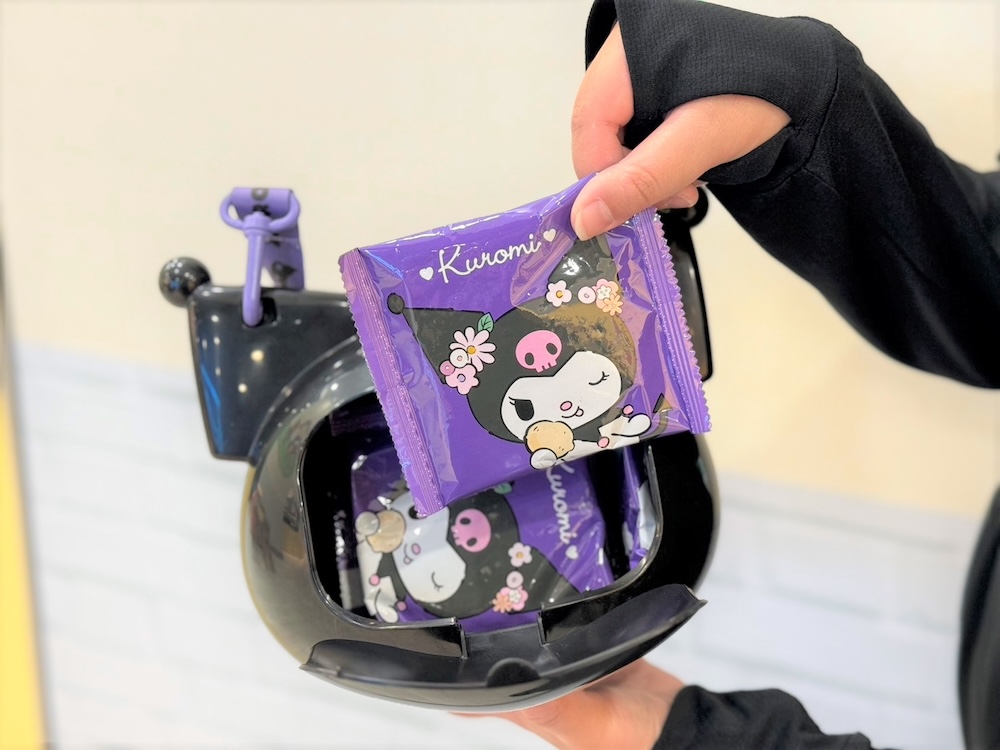 ▼此外還有做成大頭的「Kuromi法國麵包脆餅造型桶」,獨特酷洛米造型設計,無論是郊遊還是辦公室,都能成為最亮眼的焦點。附背帶可以輕鬆帶走,內容物則是厚實口感的法國長棍麵包餅乾,搭配酷洛米個別包裝,吃起來香香脆脆,還有濃濃奶油香氣~