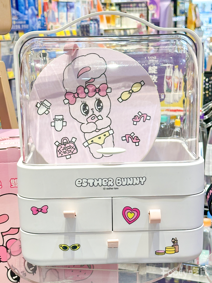 ▼「三層化妝收納箱」也太實用!多格分區,大容量收納,側邊和內側還有艾絲樂小兔的蹤跡喔!
