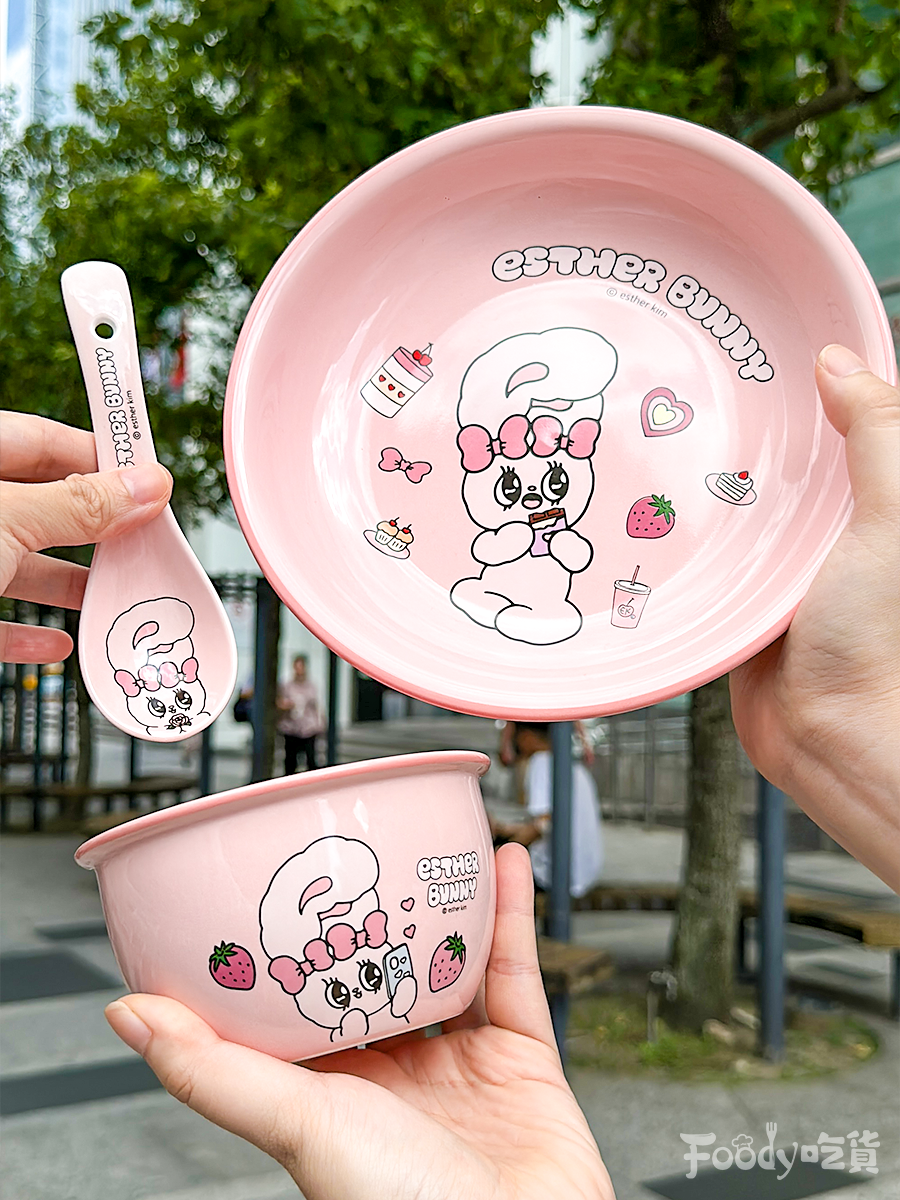 ▼「雙人餐盤6件組」可以微波、放洗碗機,一套就有兩個碗盤和湯匙,是與艾絲樂小兔共進晚餐的完美選擇。