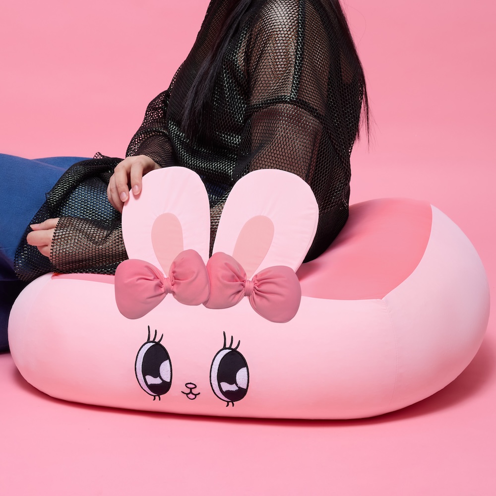 ▼超級搶眼的「冰絲懶骨頭」是透氣舒適的冰絲材質,可坐可躺可抱,提供舒適休息空間。「粉粉雙面被」雙面設計,為居家生活添加可愛氛圍。