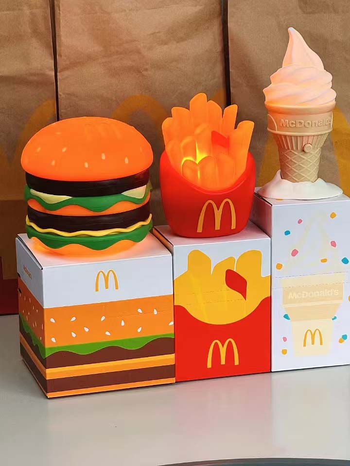 ▼另外,中國麥當勞還推出了3款超萌的拍拍燈,這些拍拍燈的造型靈感來自麥當勞的經典產品-漢堡、薯條和冰淇淋。別看它們只是小小的燈具,但那逼真的外形足以讓人垂涎三尺。更厲害的是,只要輕輕一拍,它們就能發出柔和的光,瞬間點亮你的房間,營造出滿滿的浪漫氛圍。
