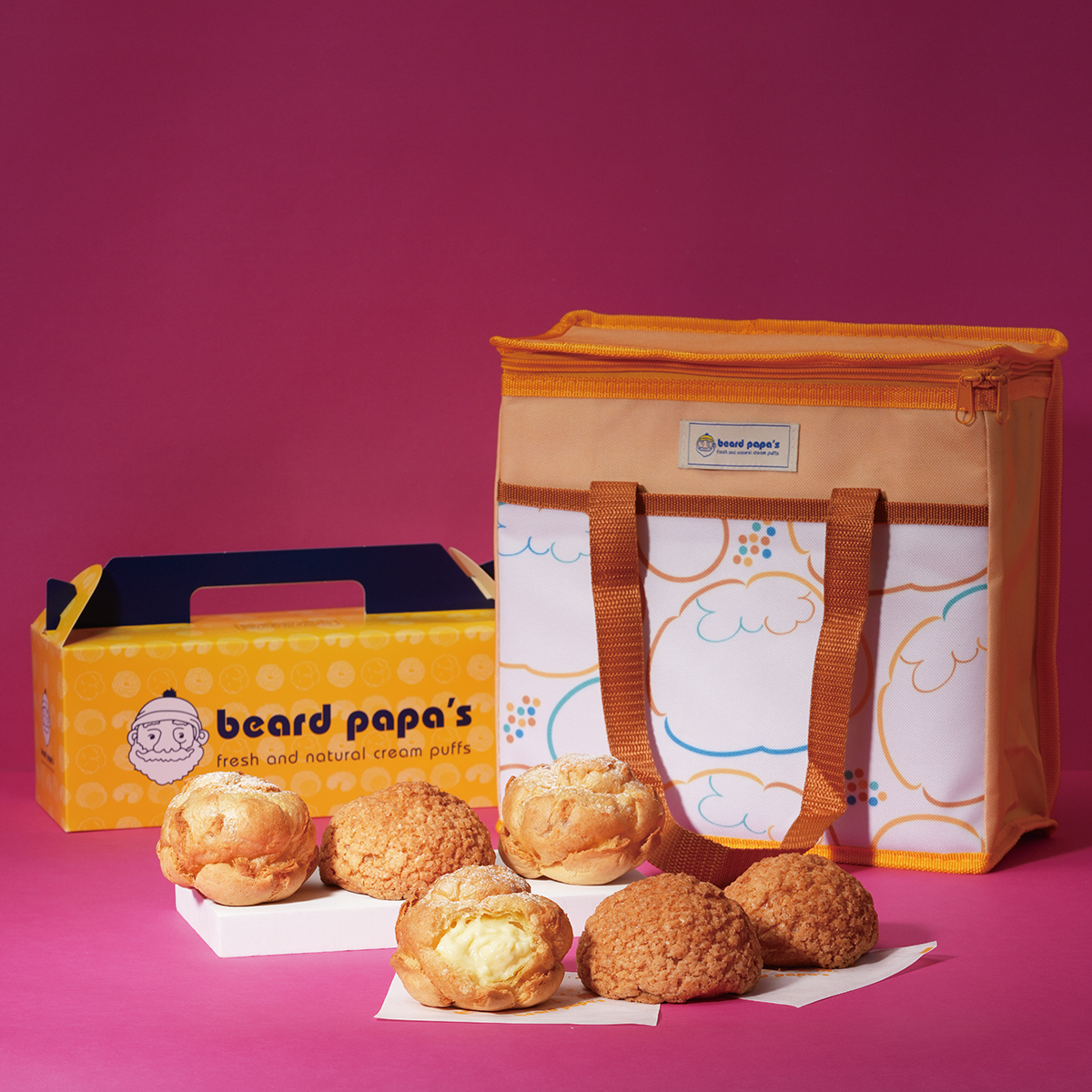 ▼配合百貨年度週年慶,beard papa’s更首度推出限量PAPA禮盒。該禮盒內含日式香草泡芙3顆、菠蘿香草泡芙3顆及PAPA保冷袋1個,售價699元(週慶限定87折,原價804元)。每日上午15組限量,售完為止。想把泡芙當禮物送人的就趁這波啦!