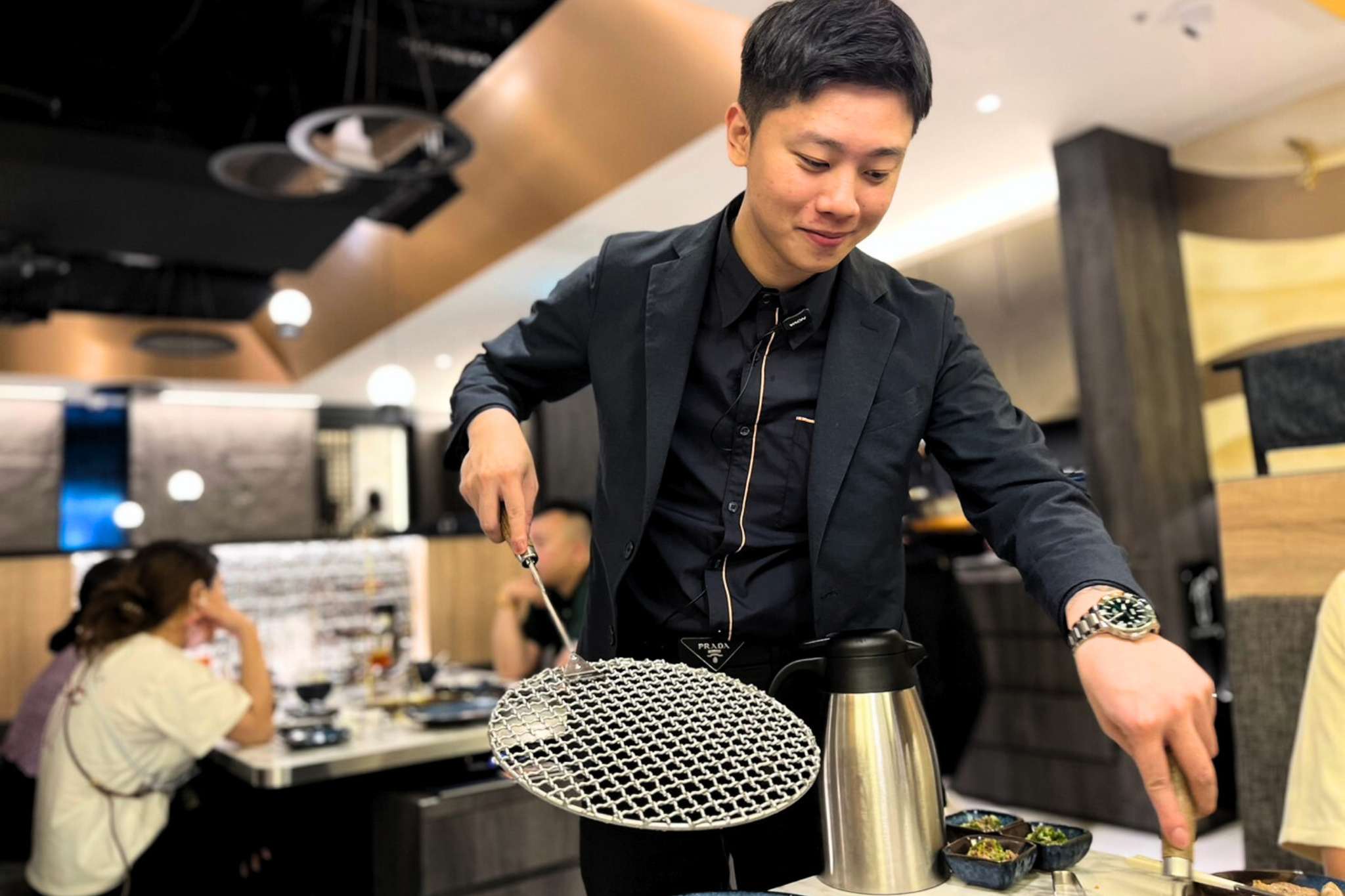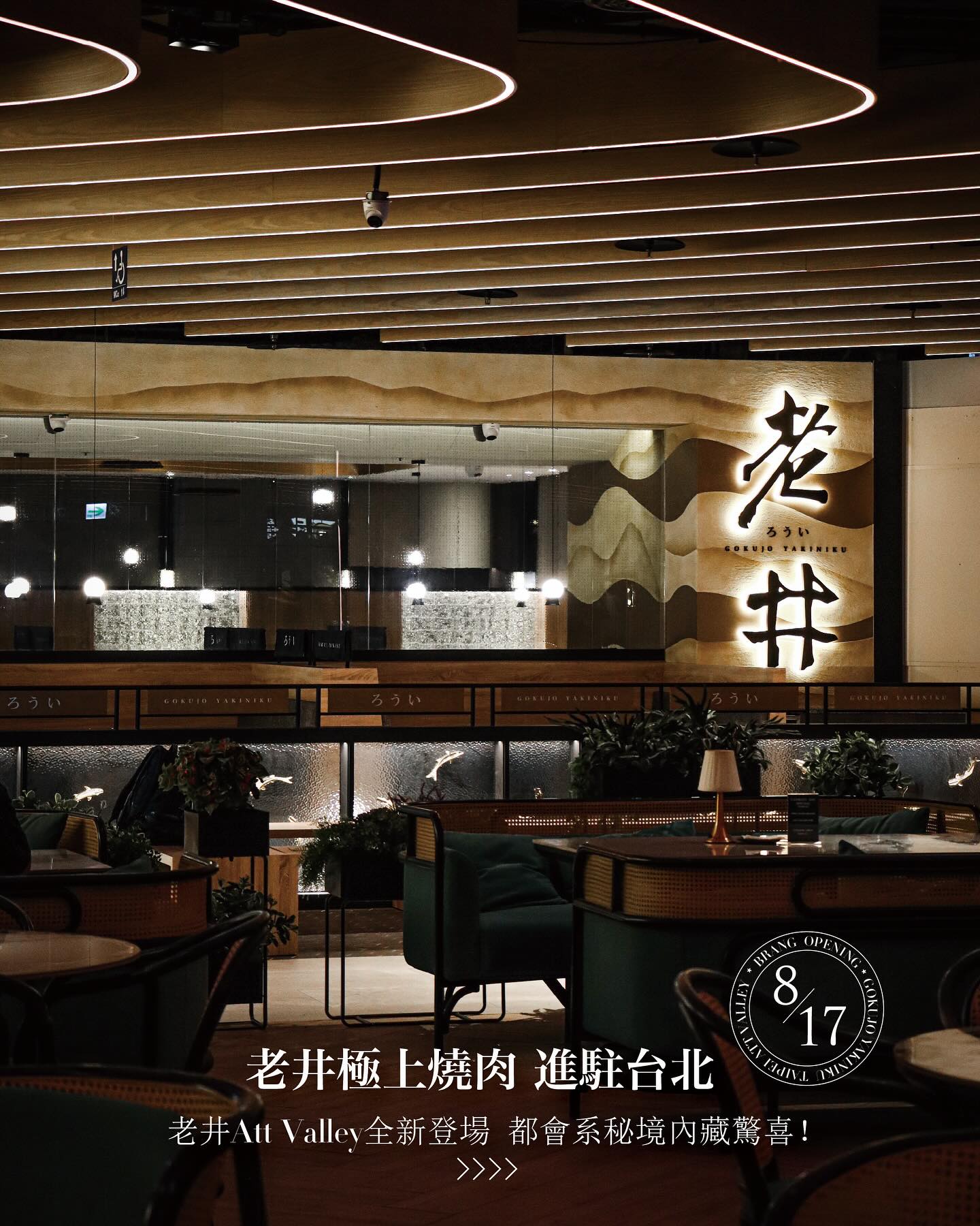 2024年09月06日燒肉控們快點看過來!信義區最近又多了一處不得了的秘密美食景點!位於Att Valley半戶外地下空間的「老井極上燒肉」台北首店已經正式進駐,地址就藏在松仁路101號B1。這裡的裝潢設計可以說是打破了以往燒肉店的明亮文青風格,採用了暗色系來營造出一種神秘且高級的氛圍,讓整個空間充滿了都市夜生活的摩登感。天花板像倒吊的井口,地上還有水滴雕塑,這些小細節讓你一踏進去就彷彿來到一個都市秘境。