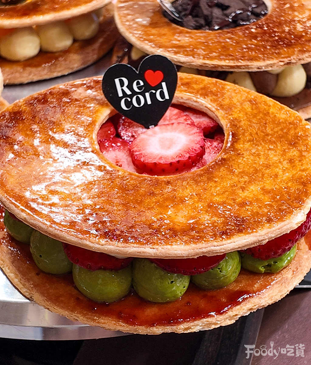 ▼「唱片千層酥」口味多樣,經典的「京都宇治抹茶草莓唱片千層酥」,抹茶跟草莓的搭配絕對不會出錯!此外還有滿滿和歌山蜜柑唱片千層酥,咬下去蜜柑汁液在口中綻放,滿滿的水果香氣~巧克力控則可以選擇「Oreo榛果巧克力唱片千層酥」,滿滿巧克力尬上卡士達,這款甜點都能滿足你挑剔的味蕾~雙重快感不吃怎麼行?
