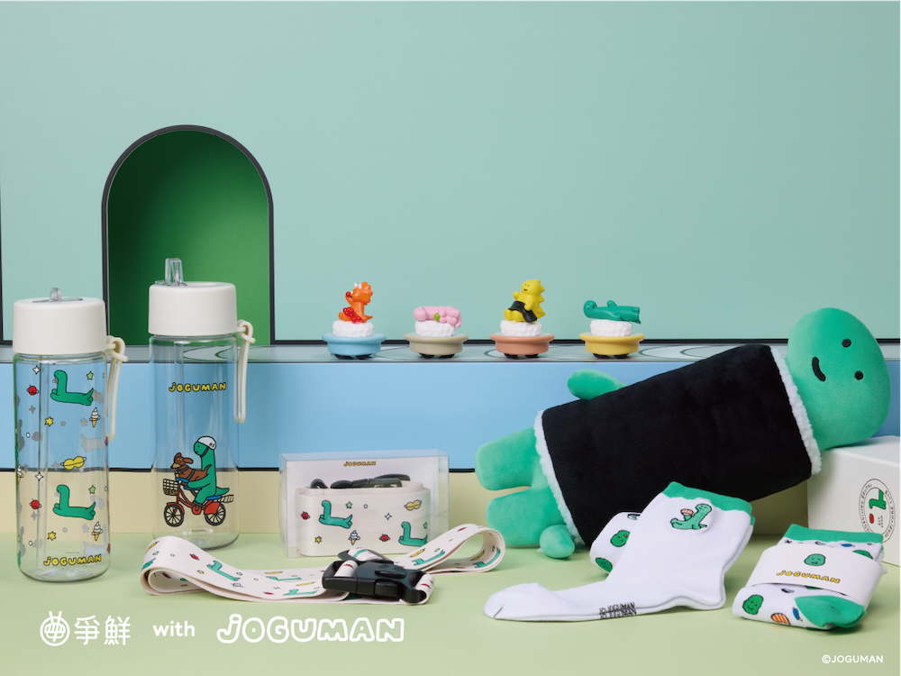 ▼爭鮮與JOGUMAN連續8週推出10款系列周邊,每週推出不同款,有具實用性的「冷水瓶」、「行李束帶」,還有「爭鮮特別款」的「迴轉壽司迴力車」、「襪子」、「絨毛玩偶」等。每款都趣味性十足,令人超想入手!10/1起於爭鮮迴轉壽司、爭鮮PLUS門市單筆消費滿350元,即可加購JOGUMAN系列商品1個;滿700元可加購2個,以此類推~