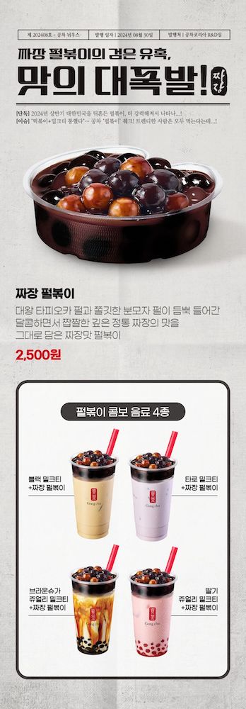 2024年10月15日不用懷疑!真的是「炸醬麵珍珠奶茶」~韓國人氣的手搖品牌「貢茶Gong cha」繼上回的辣炒年糕珍珠奶茶,又再次推出獵奇商品,這次居然把韓式炸醬麵做成炸醬珍珠,引起高度討論!台灣人這次看到要森氣氣啦~