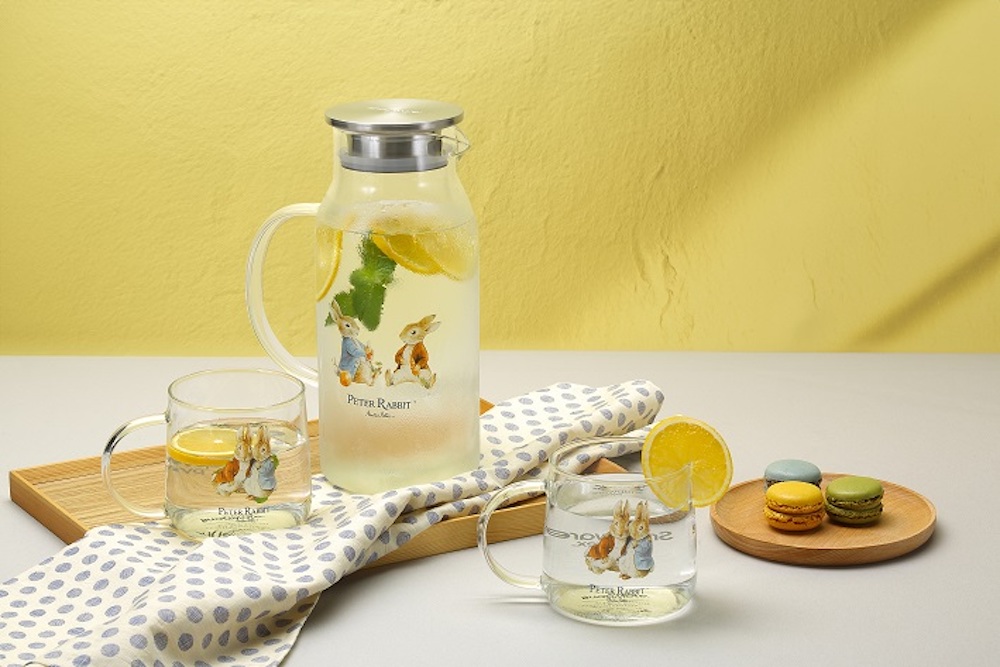 ▼「耐熱玻璃壺組」冷熱飲都能用,壺蓋上有大出水口以及細孔濾網,泡茶更方便!還附有2個彼得兔透明杯,使用起來就像與彼得兔來場浪漫英式午茶。
