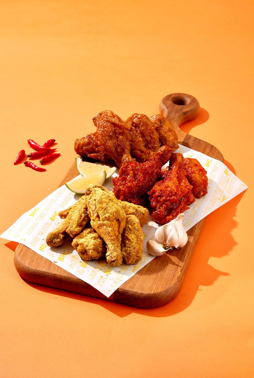 ▼BHC炸雞以經典韓式風味出名,台灣首店推出的「星星炸雞」、「醬王炸雞」和「金王炸雞」等招牌炸雞,每一口都是在韓國也熱賣的口味。為滿足台灣消費者的喜好,BHC更首創只選用台灣人最愛的大棒腿、小棒腿、二節翅及去骨腿塊四種部位,再搭配來自大成的鮮嫩雞肉,使用韓國原裝葵花籽油炸製,外皮酥脆、內裡多汁,重現韓式經典滋味。