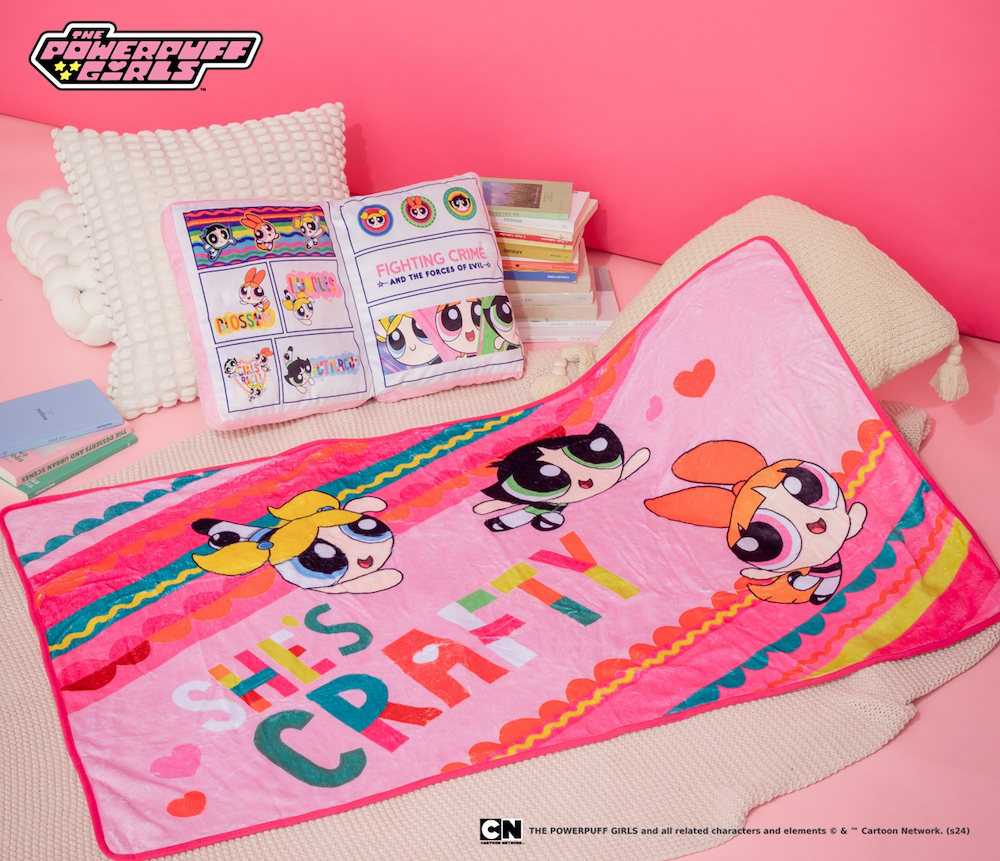 ▼如果你還想要更多驚喜,全家FamiPort的預購也有不容錯過的獨家商品哦!「飛天小女警書本抱枕毯」可謂是一物兩用,兼具實用性與可愛度。粉色系的色調,再加上飛天小女警的三位角色-泡泡、花花、毛毛,無論大人還是小孩,包準都會愛不釋手!它不僅可以當抱枕,還能變成毯子,無論是冬天的午後小憩,還是聖誕夜的暖心時光,這款商品都能讓你倍感溫暖。